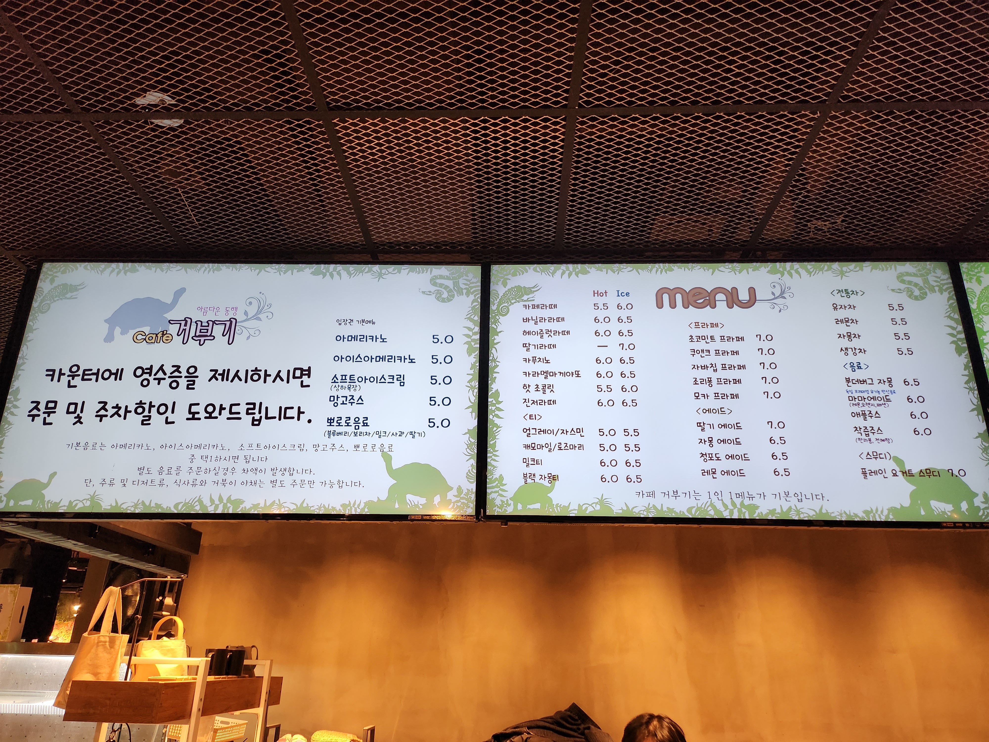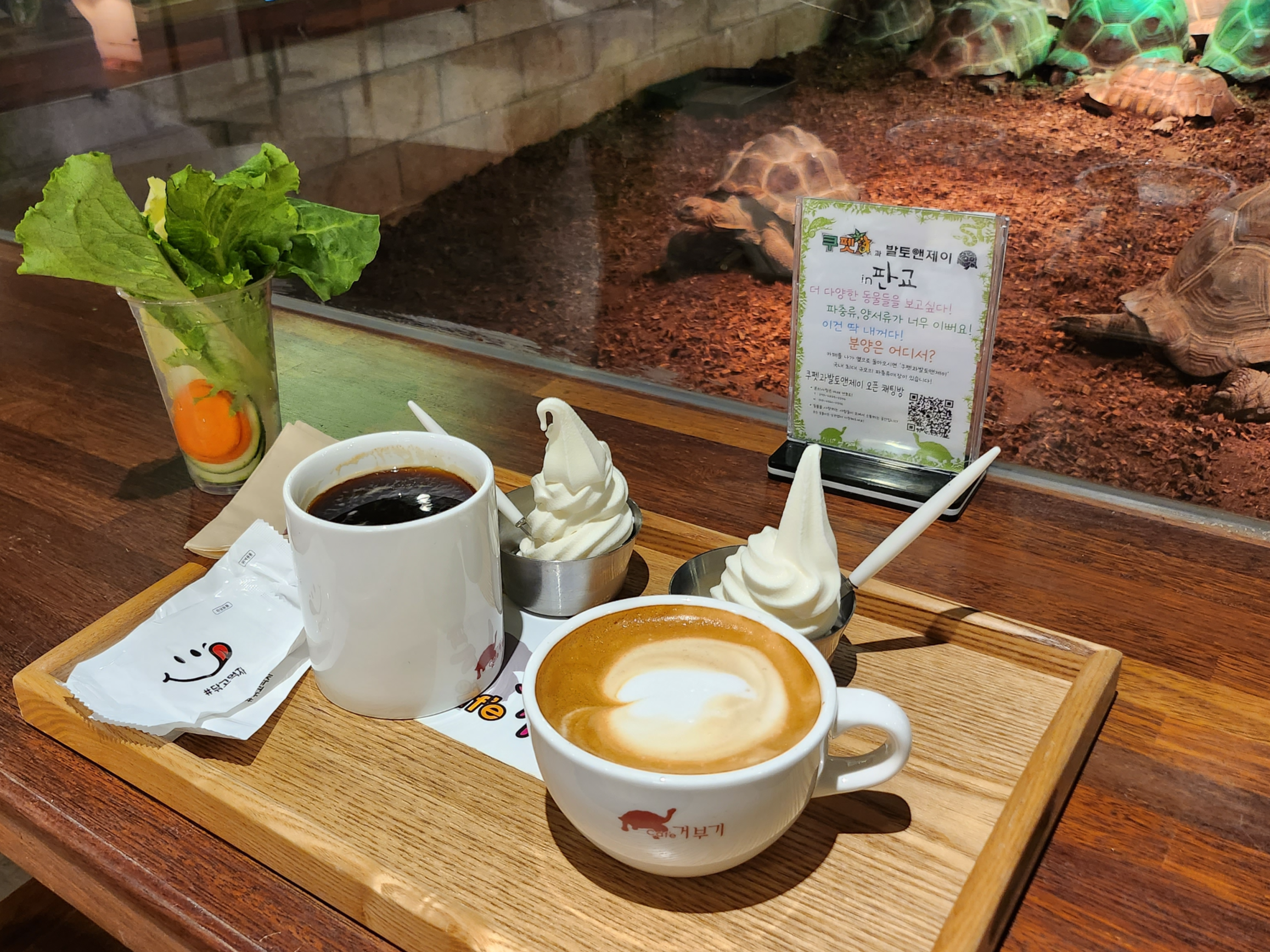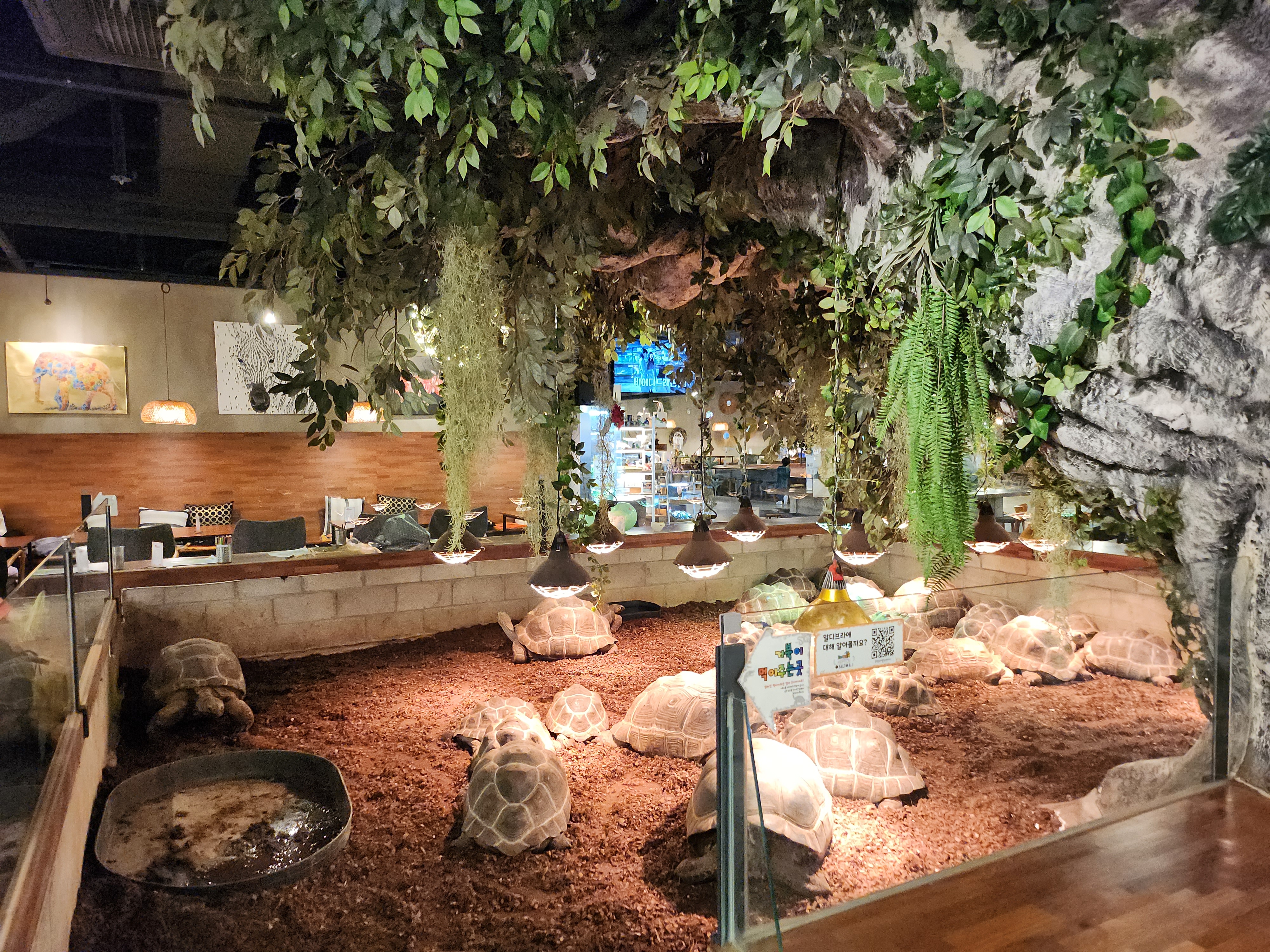 중간중간 거북이들이 있는 장소들이 있어서 거북이들을 보며 커피를 마실 수 있는 구조였습니다.