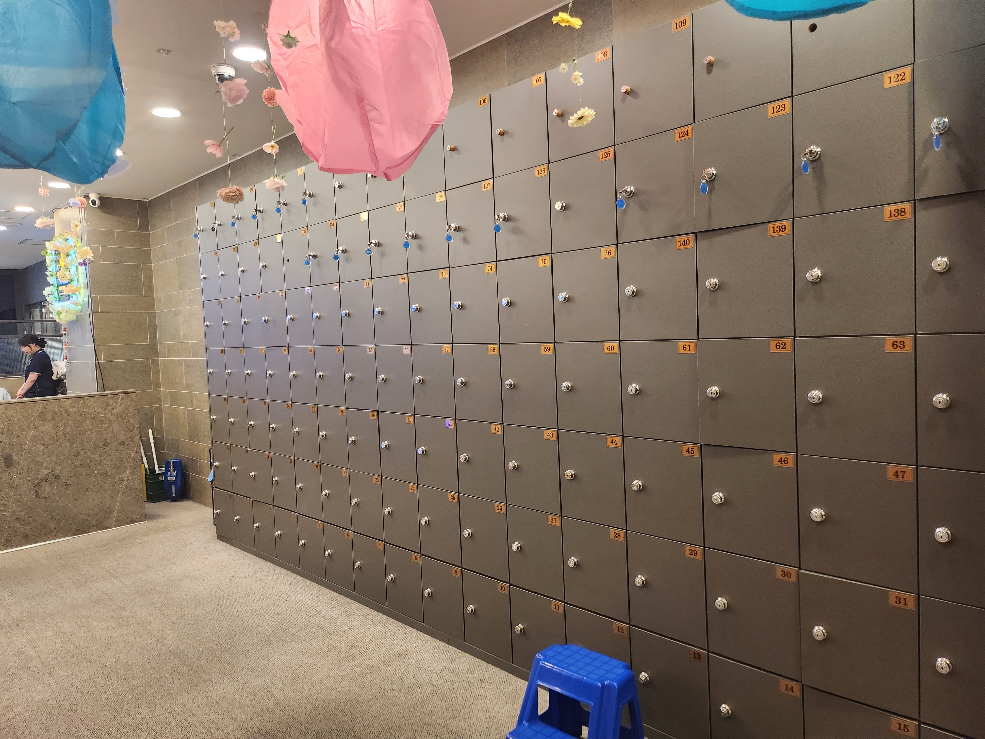 키즈카페와 워터파크로 가는 길에 사물함이 있어서 이 곳에 외투나 가방을 보관하면 됩니다.