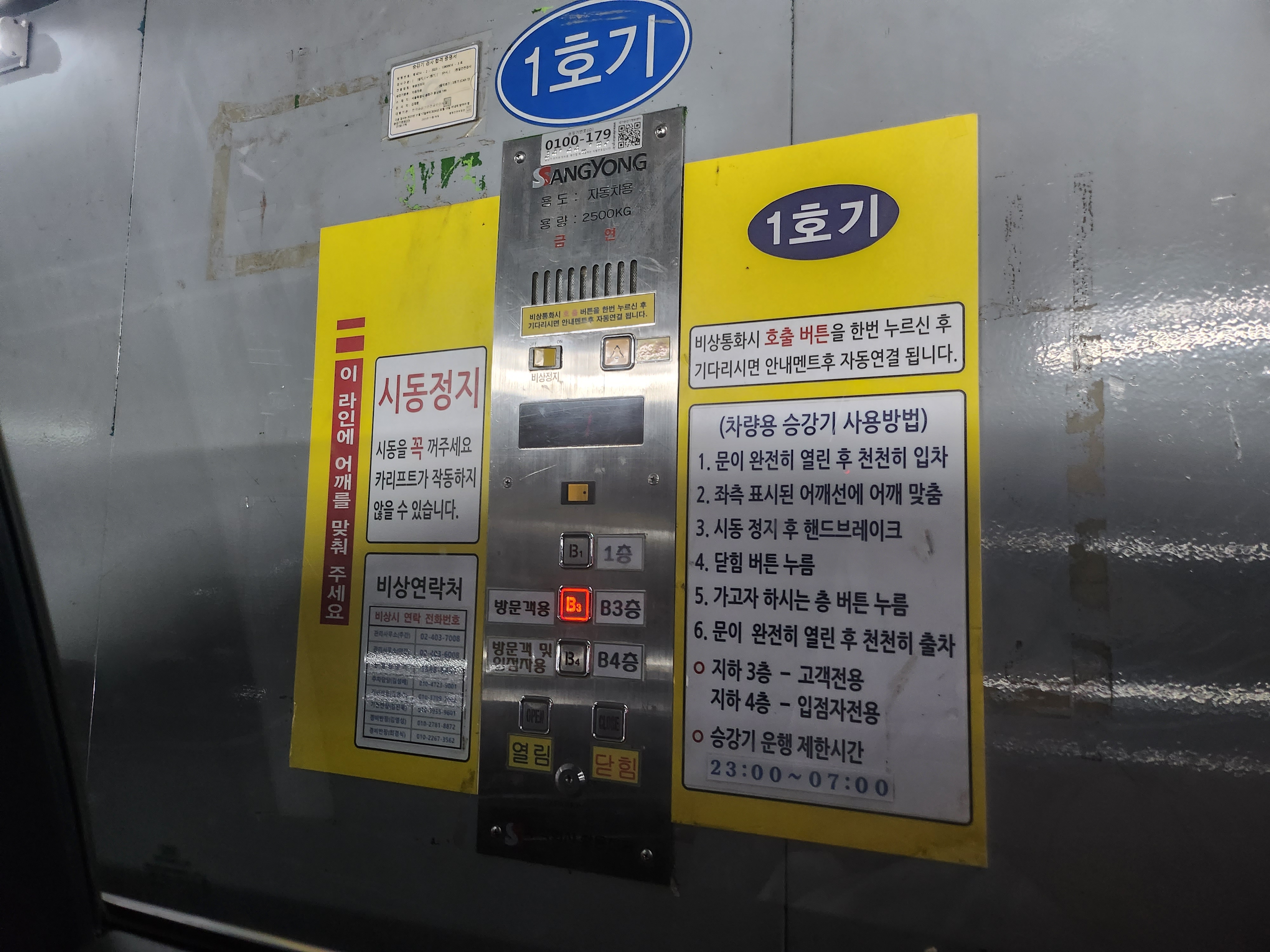 주차장은 차량용 엘레베이터를 타고 들어가고 나와야 하는 번거로움이 있습니다.