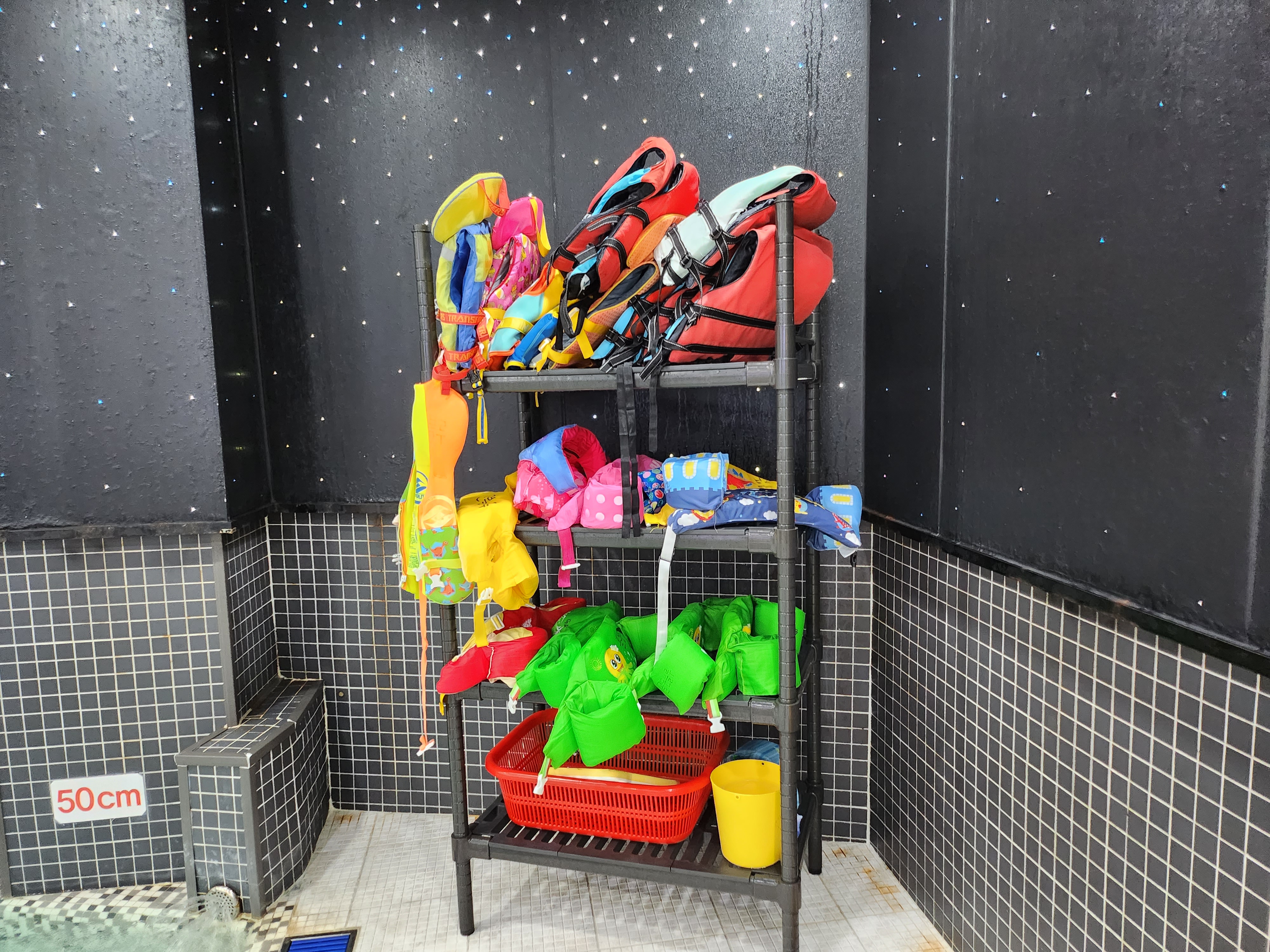 골든블루키즈빌리지에는 구명조끼와 튜브, 물총 등의 물놀이 장난감을 다 마련되어 있습니다.