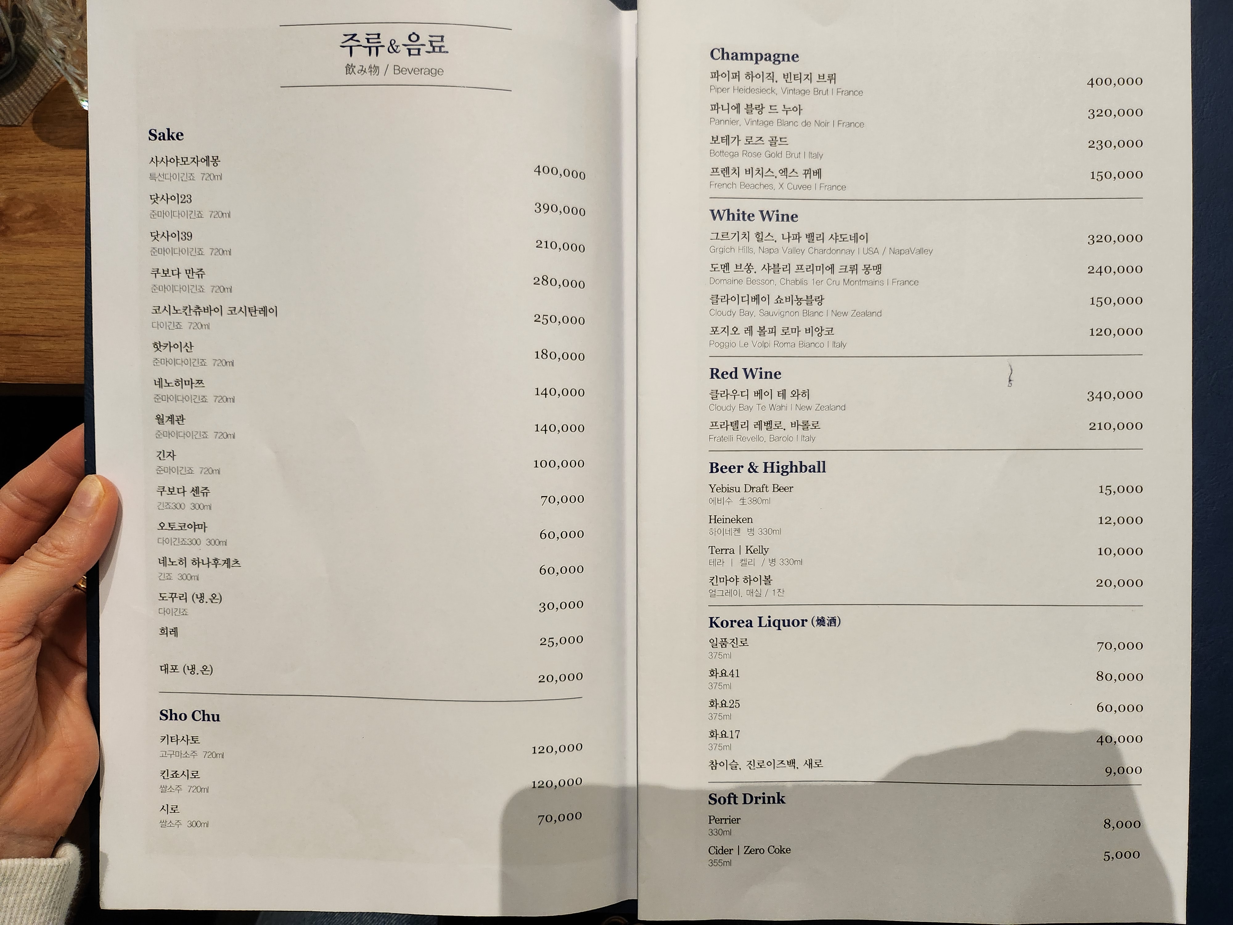 그 외에도 더 윗 단계의 높은 가격대의 코스 메뉴들도 있습니다.