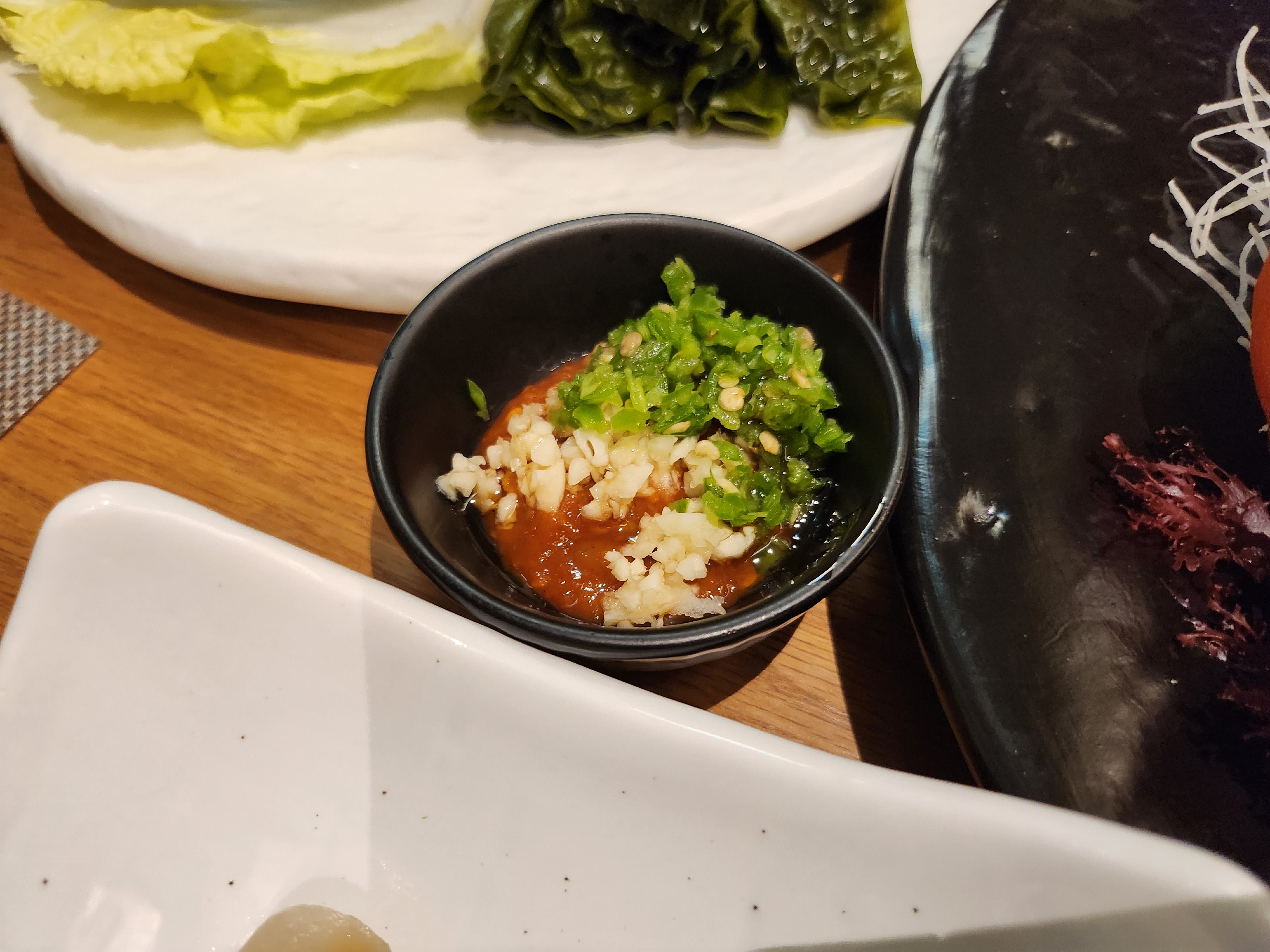회 찍어먹을 수 있게 고추와 마늘이 들어간 쌈장도 나옵니다.