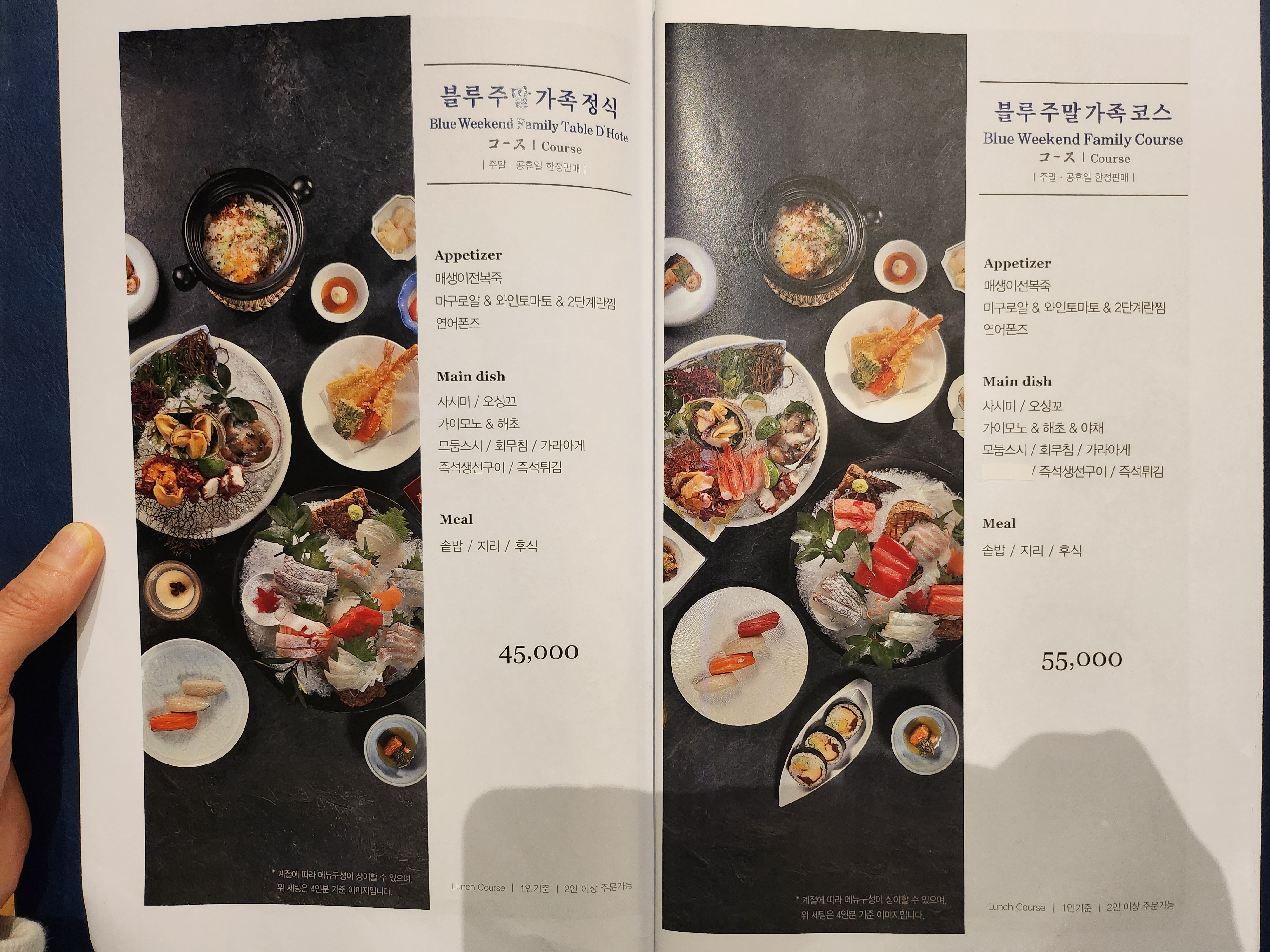 저희 일행은 제일 저렴한 메뉴였던 블루주말가족정식으로 주문하였습니다.