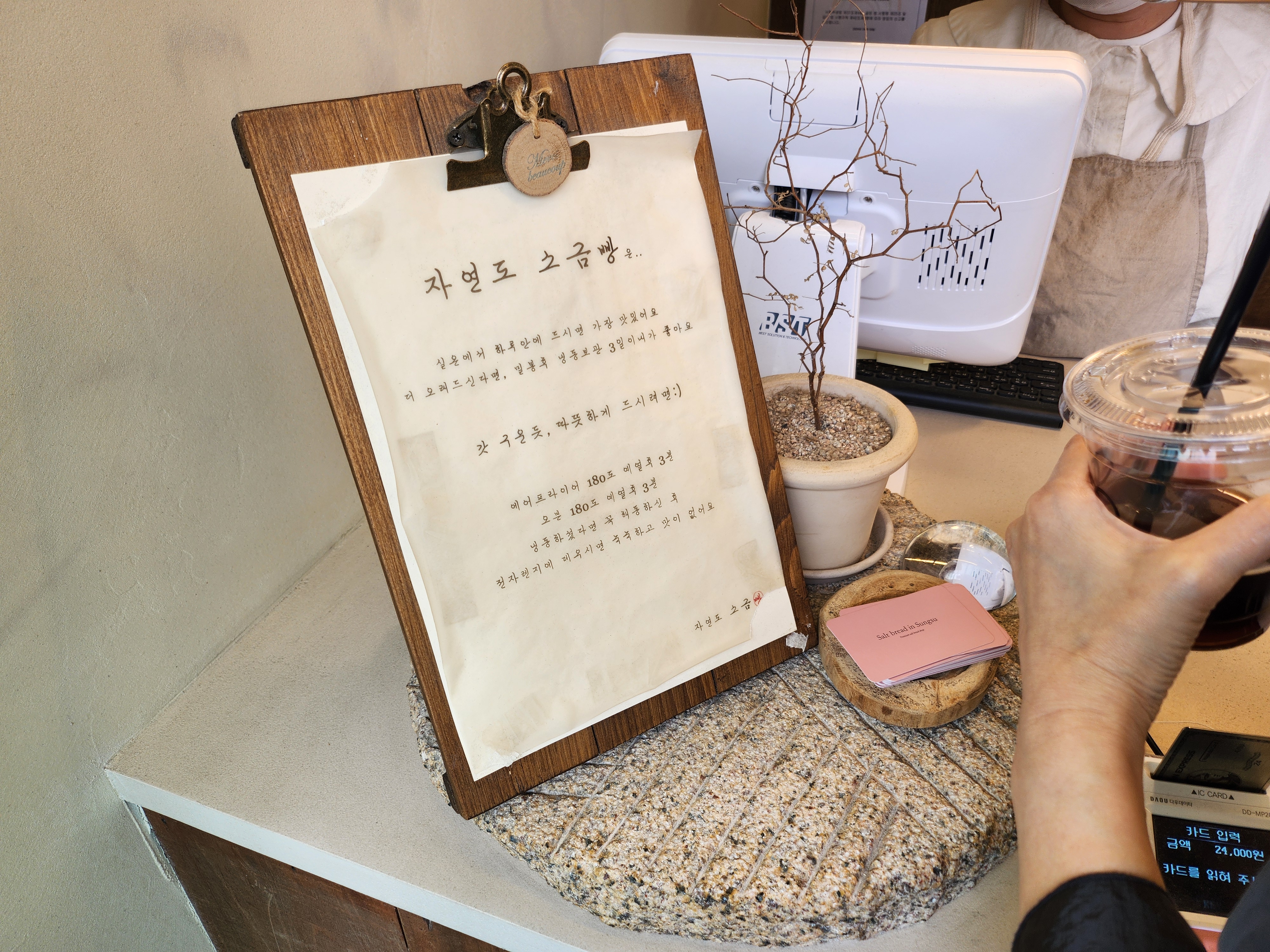 원래는 키오스크에서 주문을 하고 소금빵을 픽업해야하는데