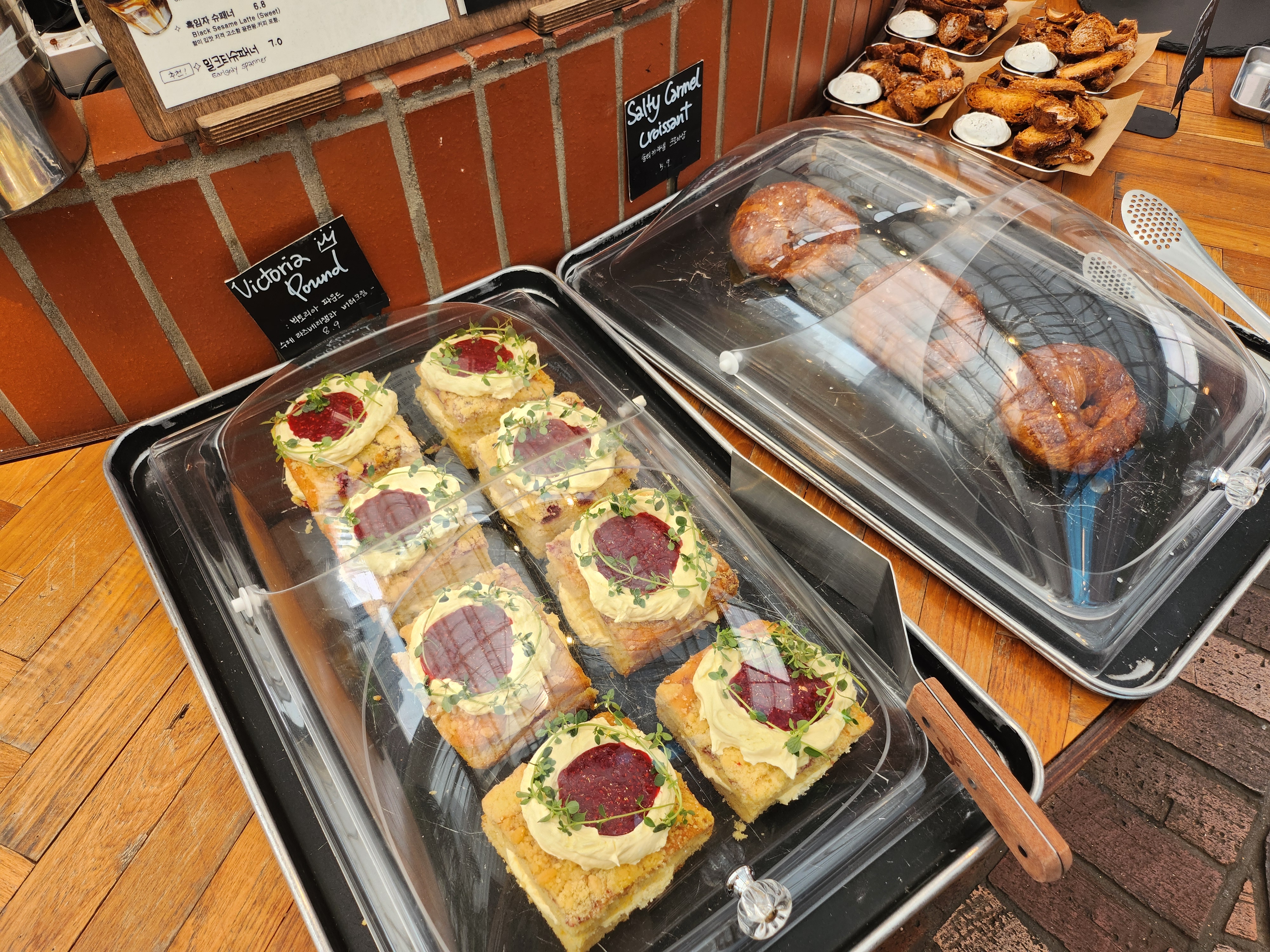 빵과 디저트 종류도 정말 다양하고 맛있어 보였습니다.