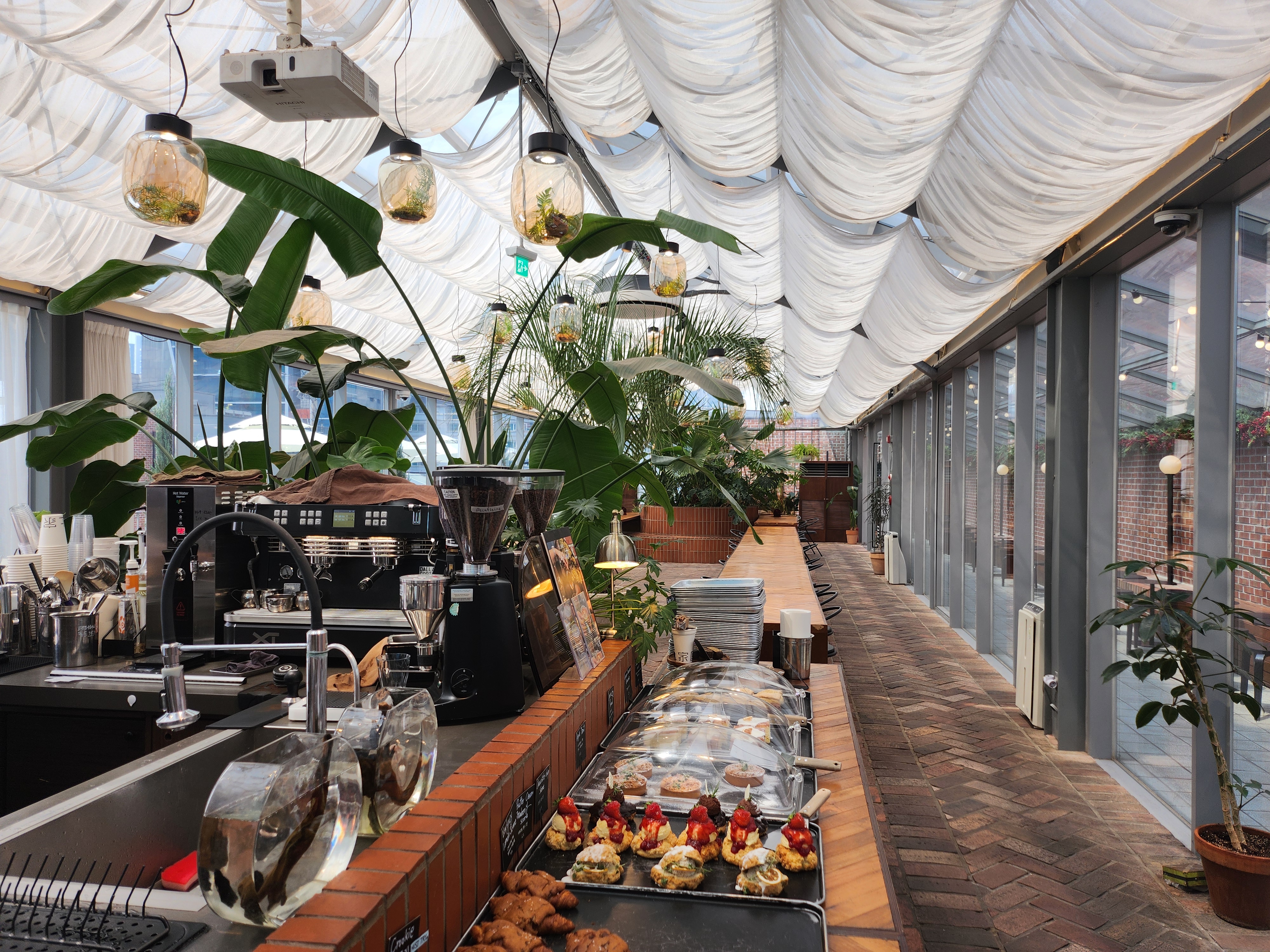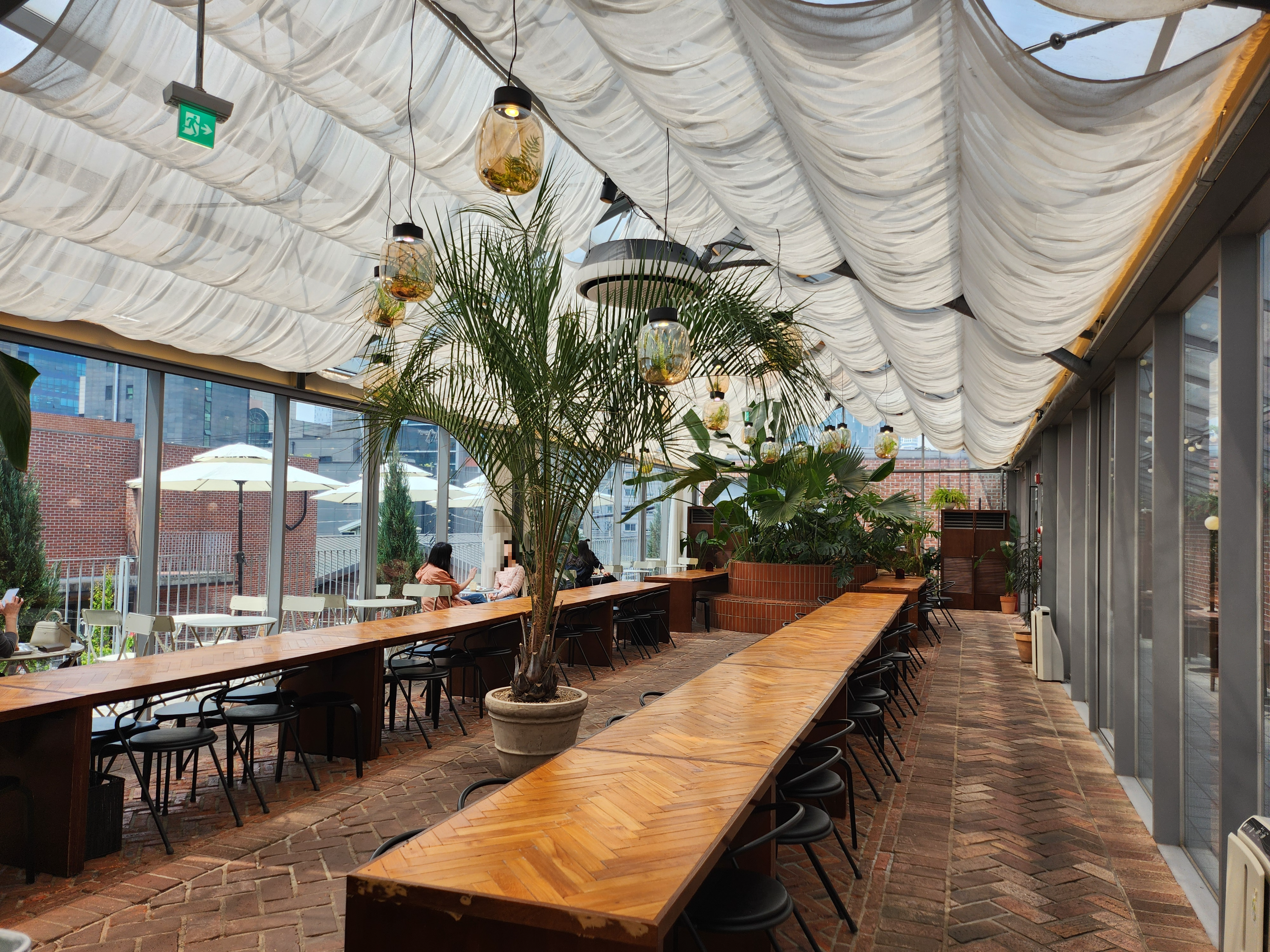 식물도 많고, 천장에 흰 천들이 물결처럼 장식되어 있어서 분위기가 좋더라구요~