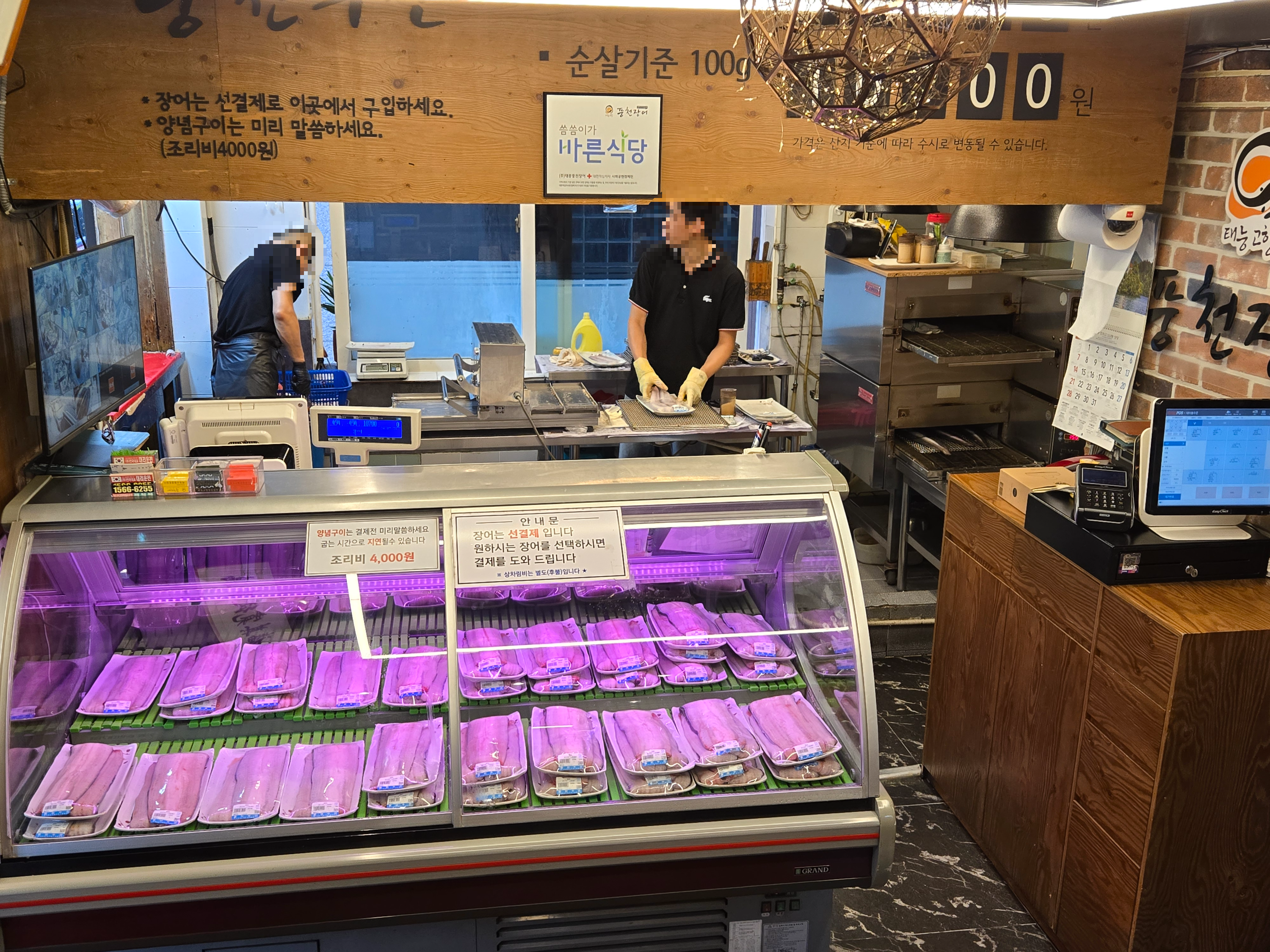 장어는 선결제로 구입하여야 하고 양념구이의 경우는 조리비용이 발생되네요.