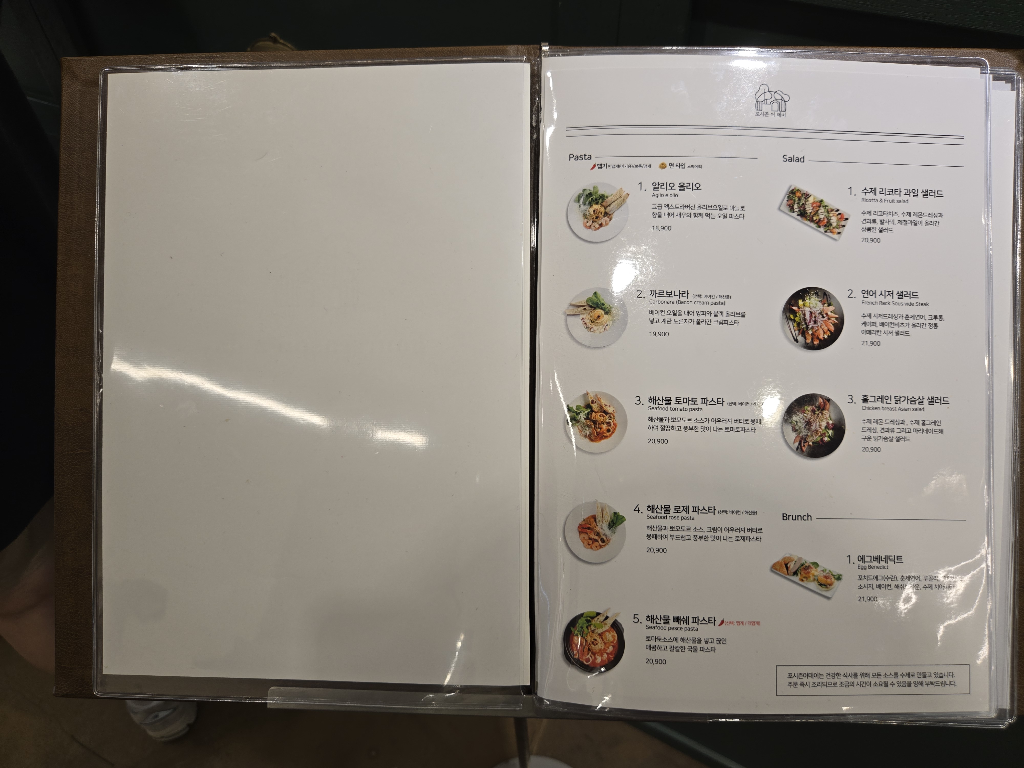 브런치 느낌이 나는 메뉴도 있지만, 본격적인 런치나 디너로도 손색이 없는 메뉴들로 구성되어 있습니다.