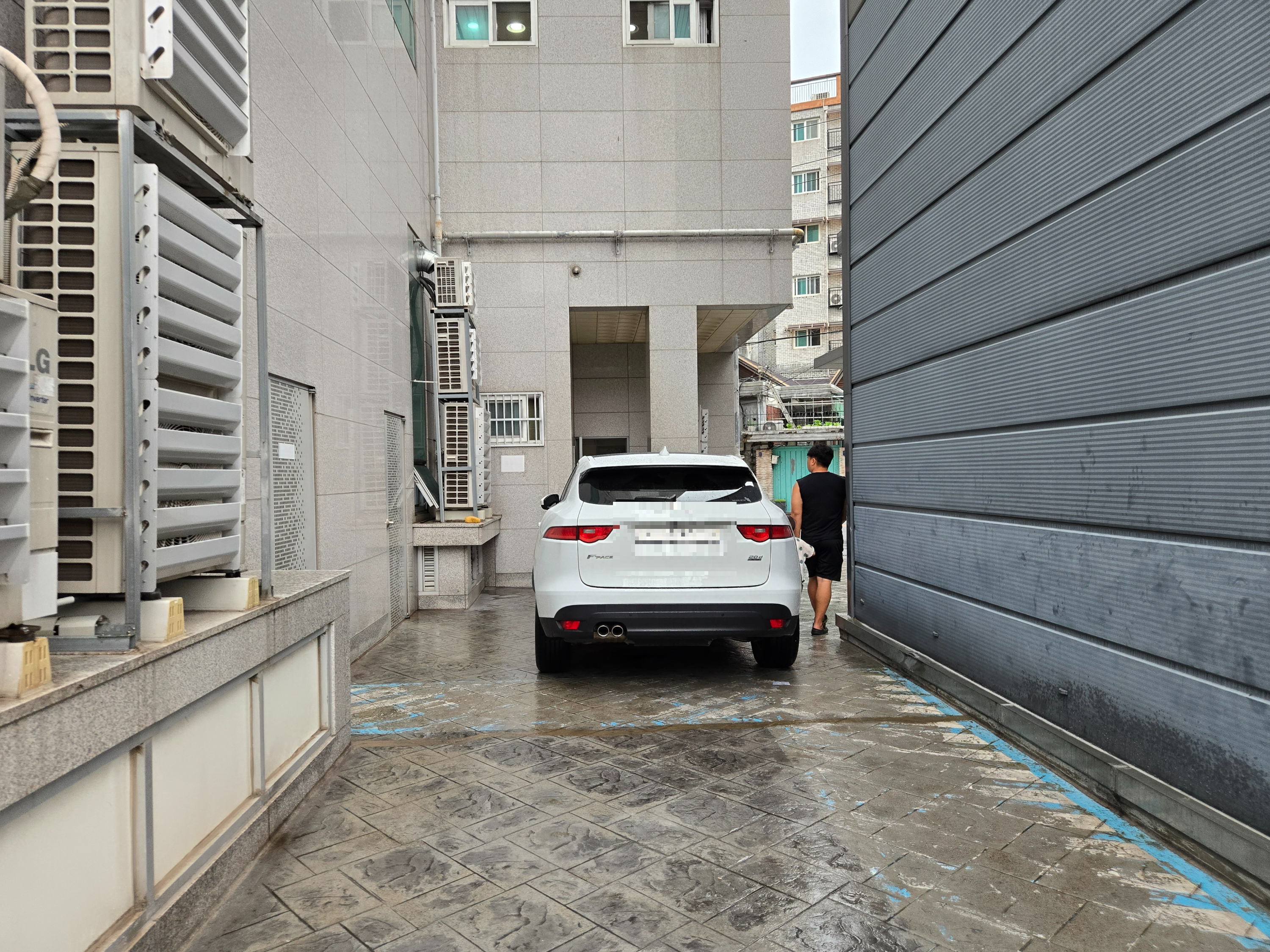 대형차나 SUV는 기계식 주차장에 들어가기 힘들기 때문에 건물 옆에 주차를 하였습니다.