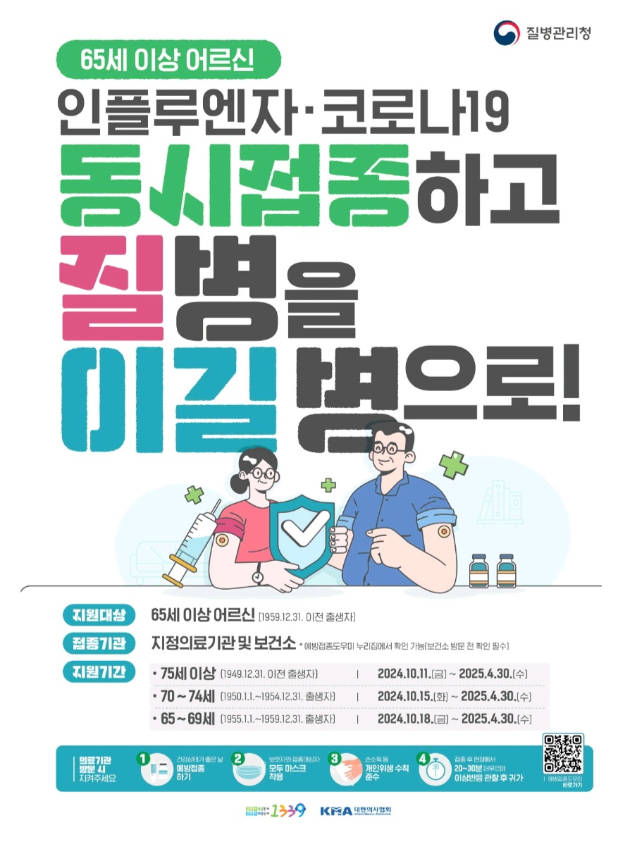 3) 65세 이상(’59.12.31. 이전 출생자) - 코로나 백신과 동시 접종 권고