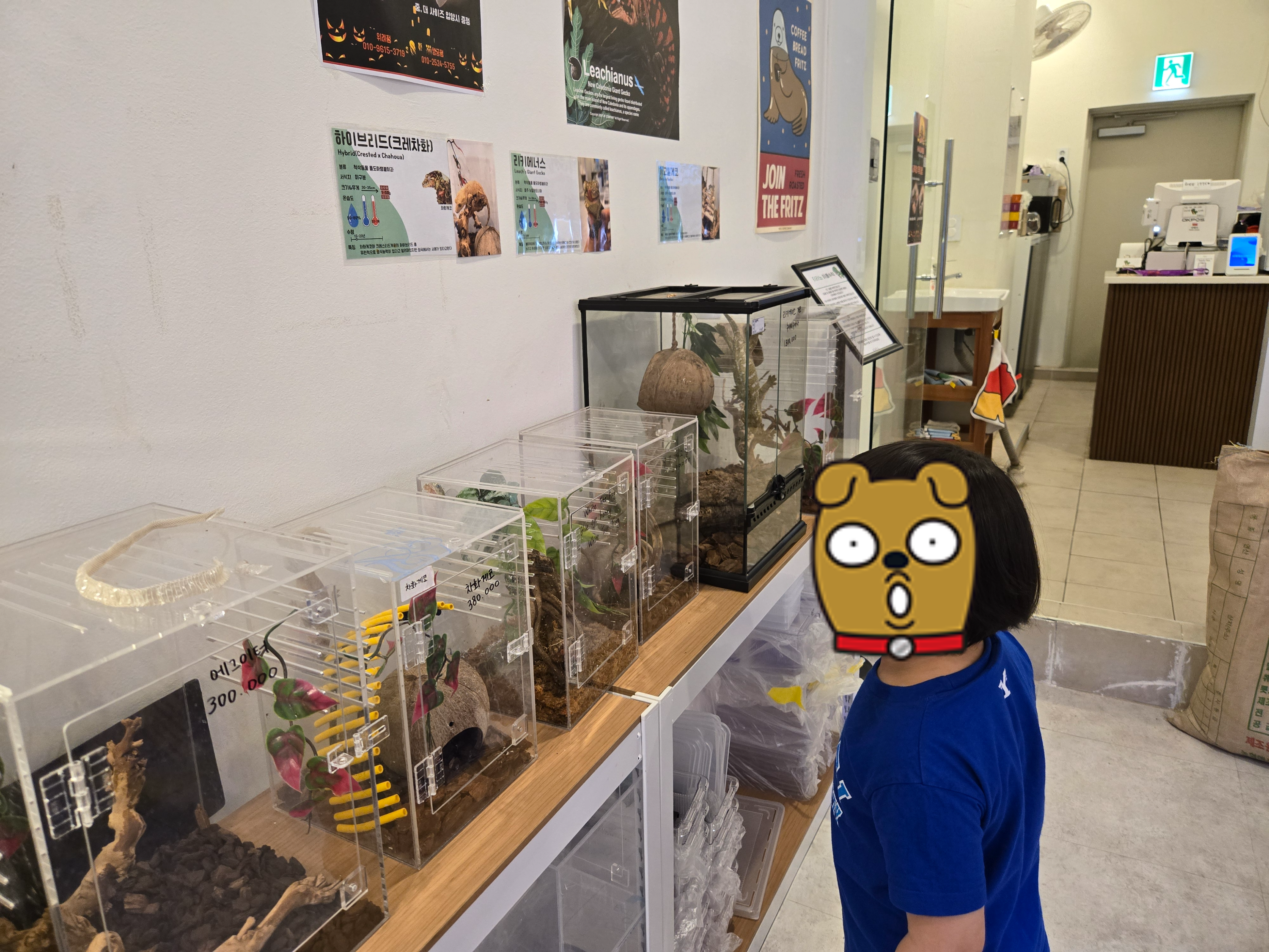 통유리로 되어있어서 내부가 잘 보이는 도마뱀 카페였습니다.