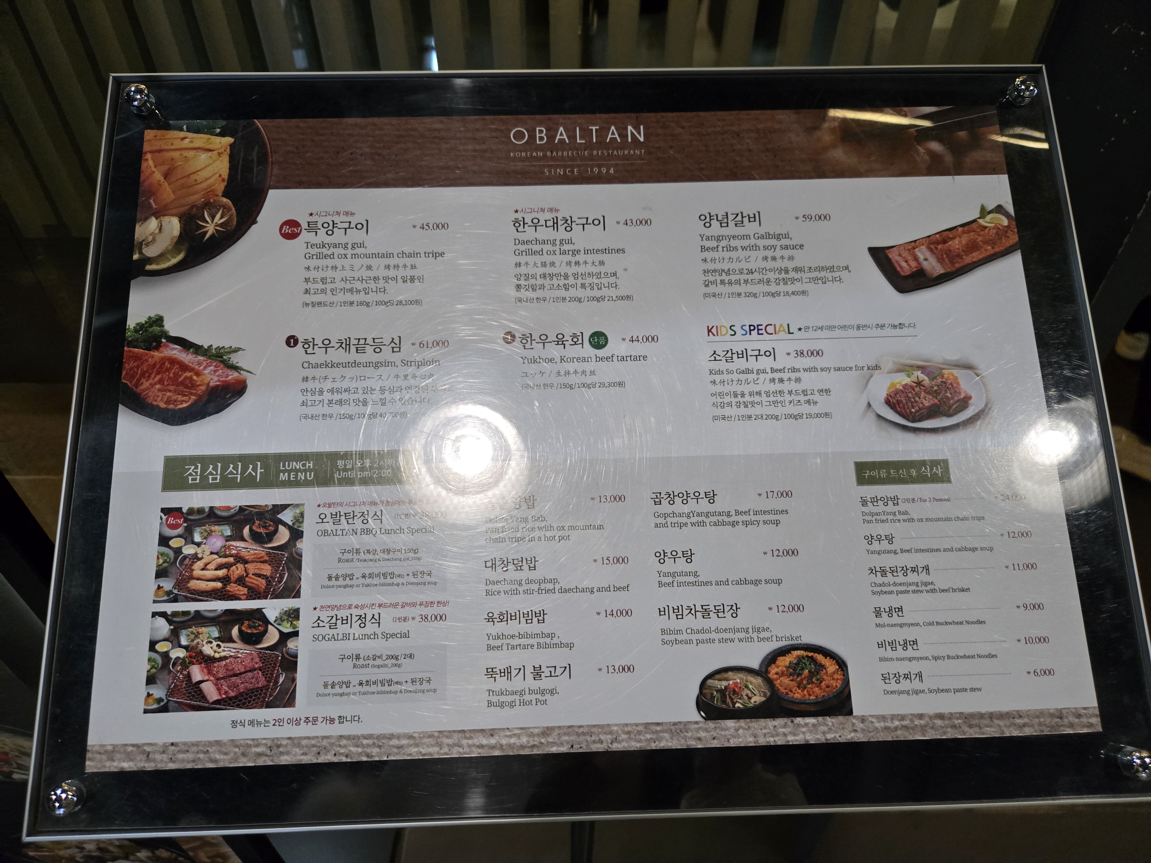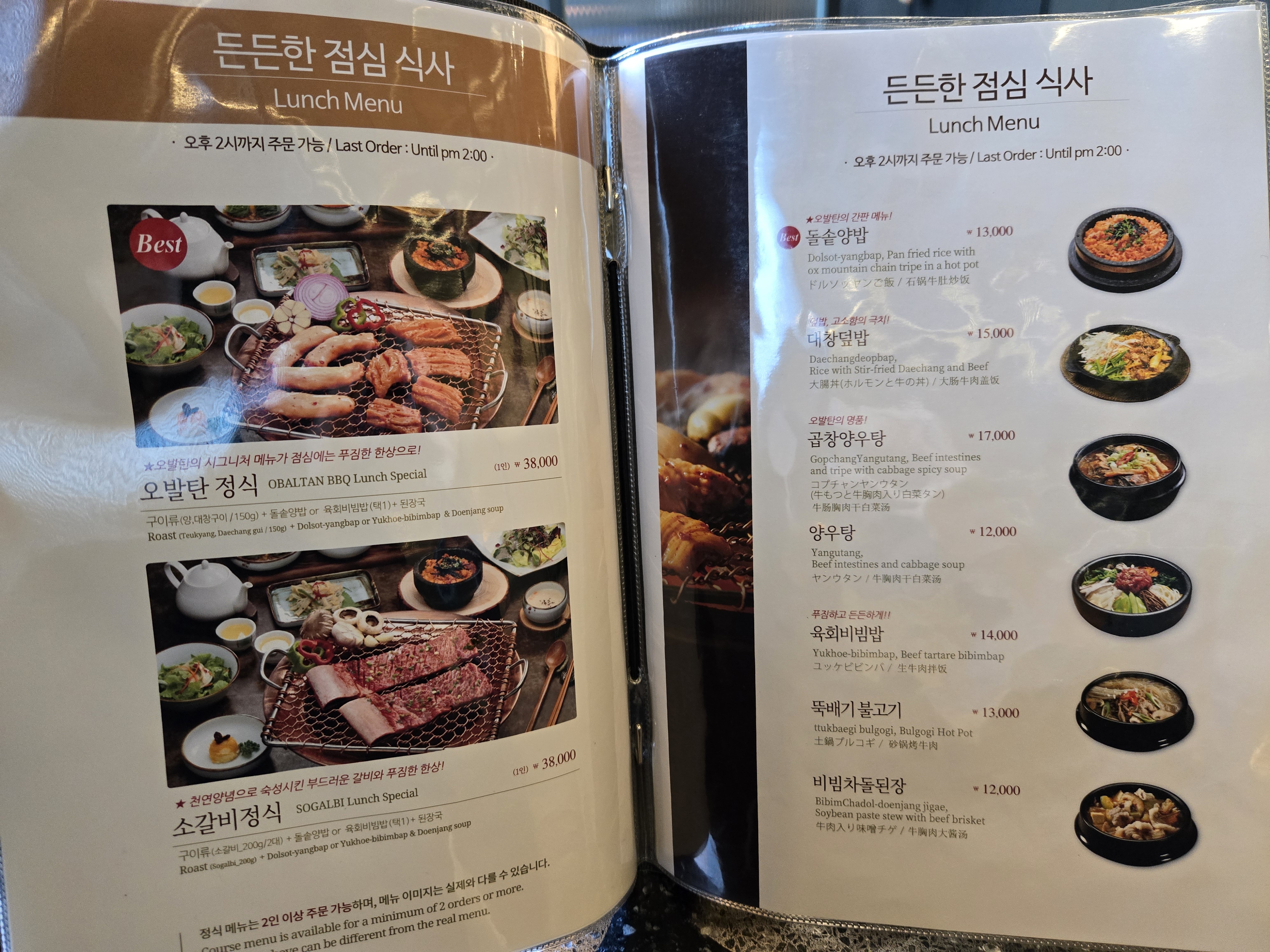 메뉴판에는 오발탄의 대표메뉴인 특양구이와 한우대창구이가 있고, 그 외에도 한우고기도 준비되어 있었습니다.