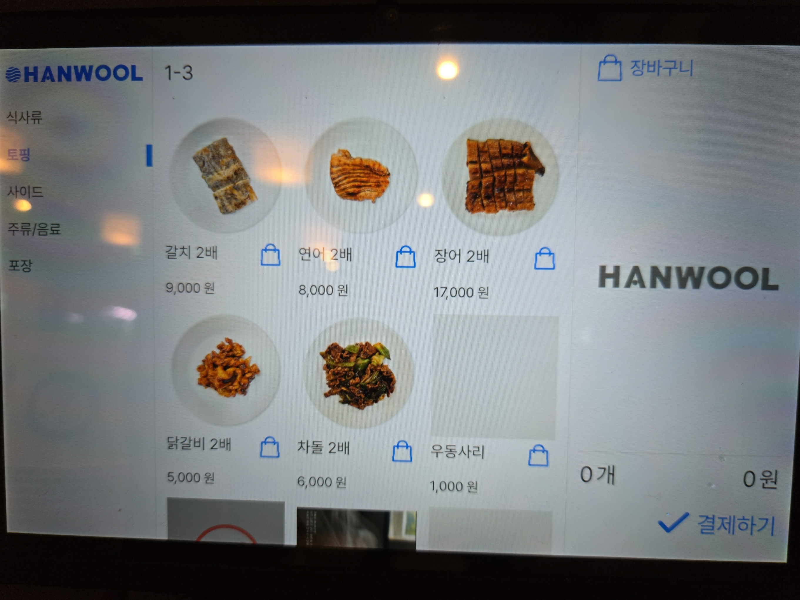 각 자리마다 마련된 태블릿으로 주문과 동시에 결제를 하면 되는 시스템이었습니다!