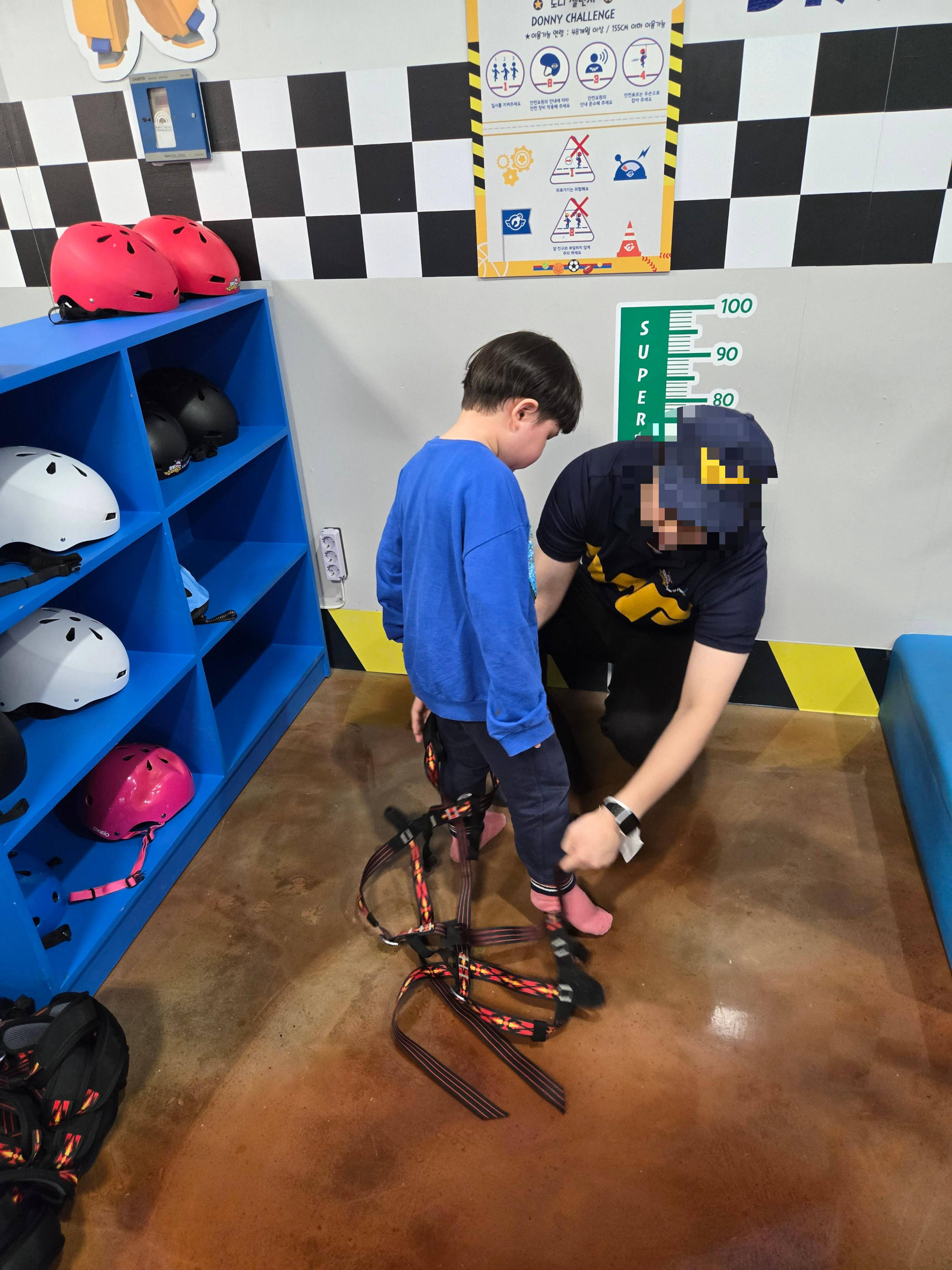 제공되는 헬멧을 착용하면 되고, 양말은 미끄럼방지 양말이 필수라고 합니다!