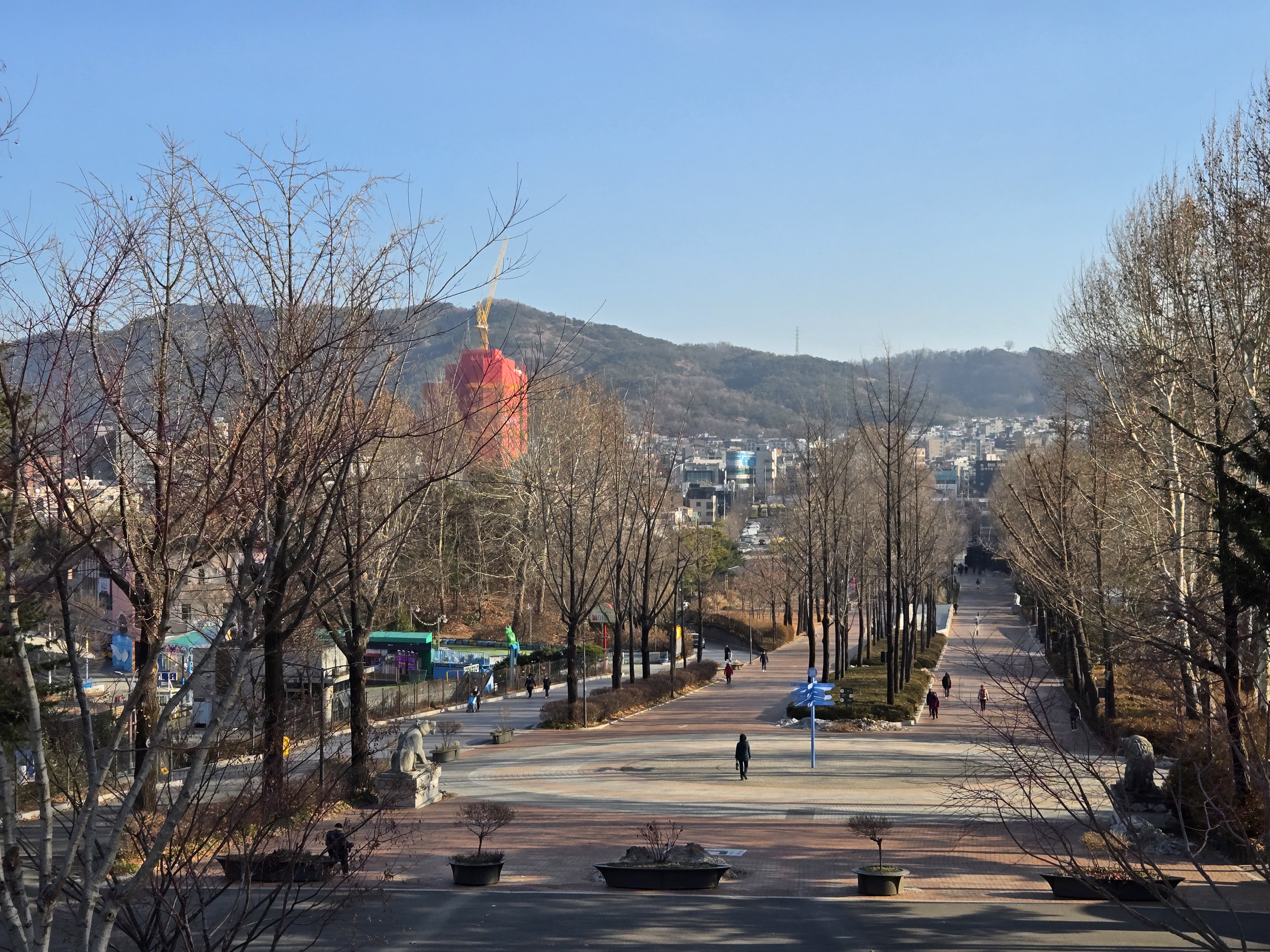 높은 곳에 오르니 어린이대공원 후문까지 쭉 뻗은 길이 한눈에 보였습니다 ^^