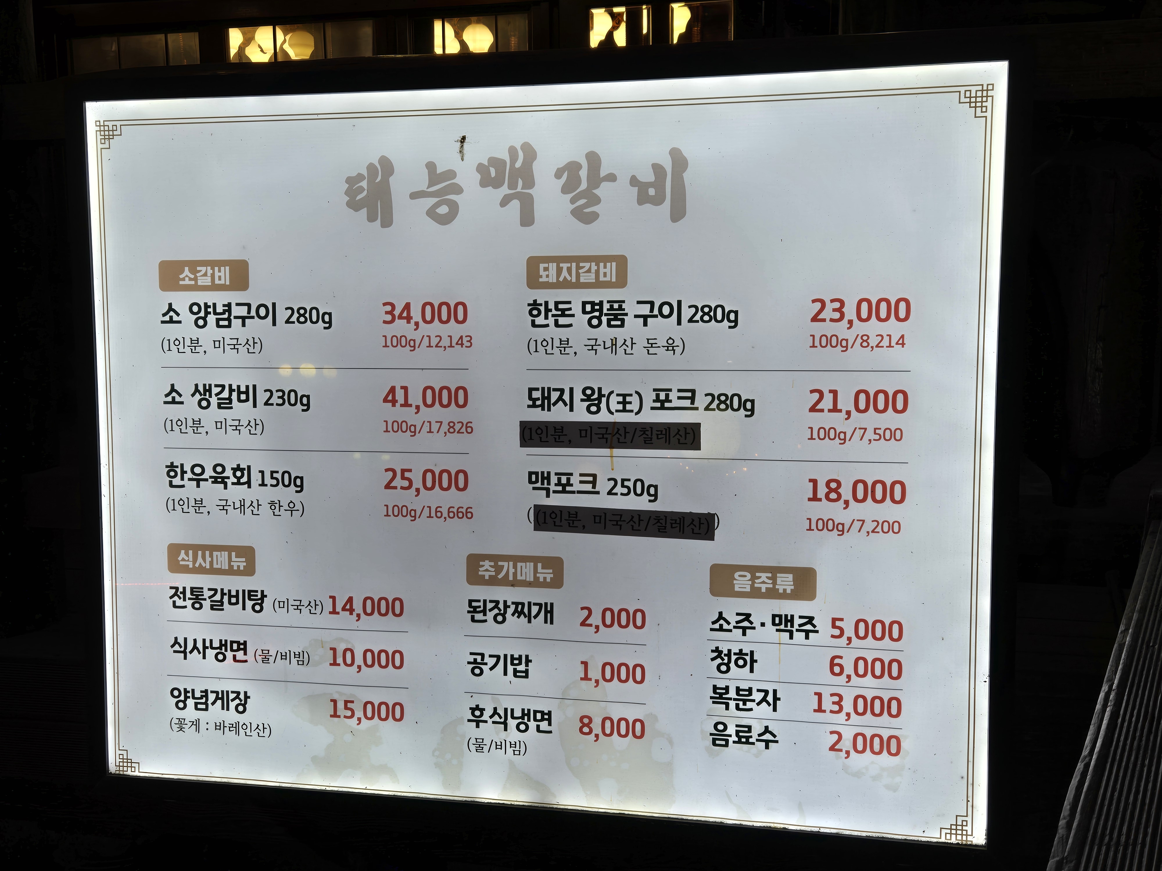남양주 태릉맥갈비의 메뉴는 소갈비와 돼지갈비가 주요 메뉴였습니다.