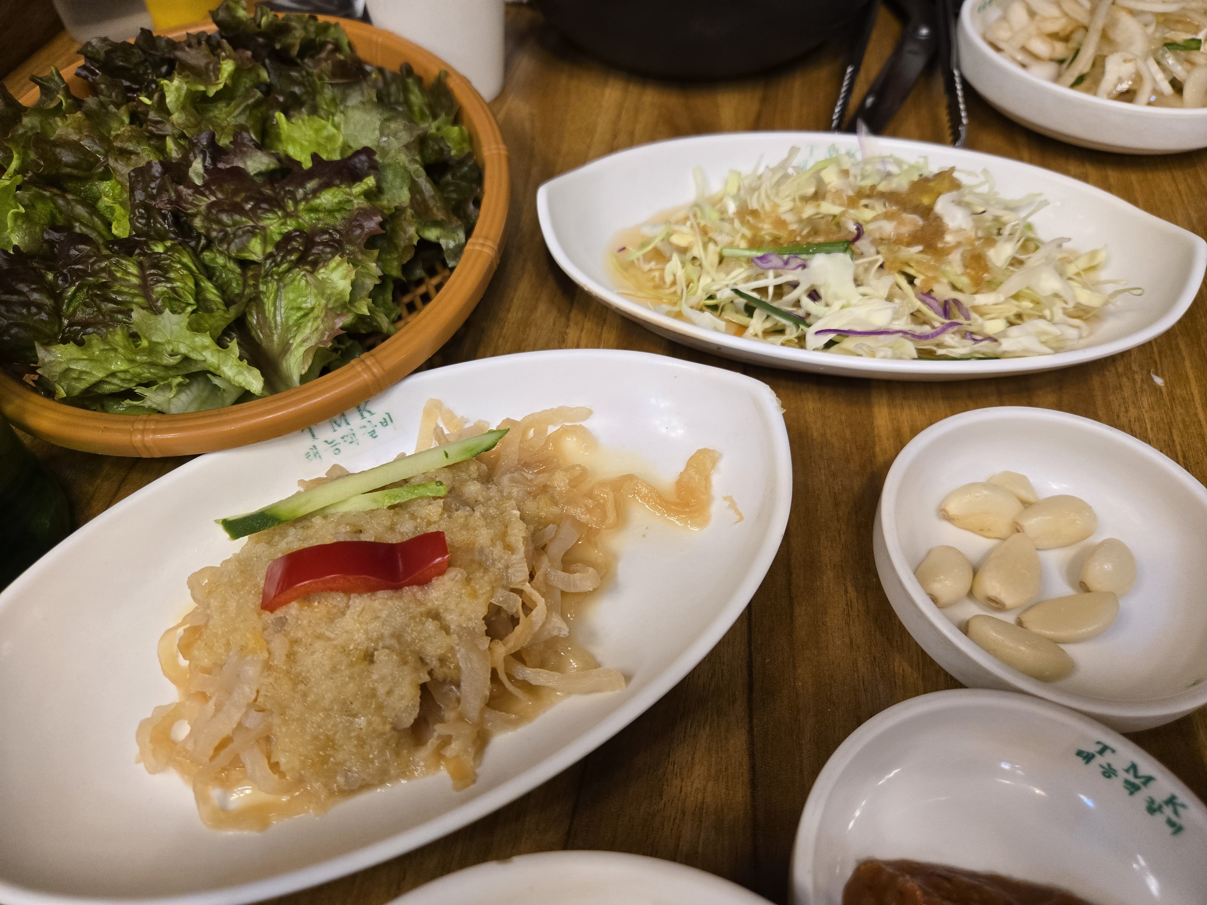 돼지갈비를 주문하고 반찬이 셋팅되었습니다.