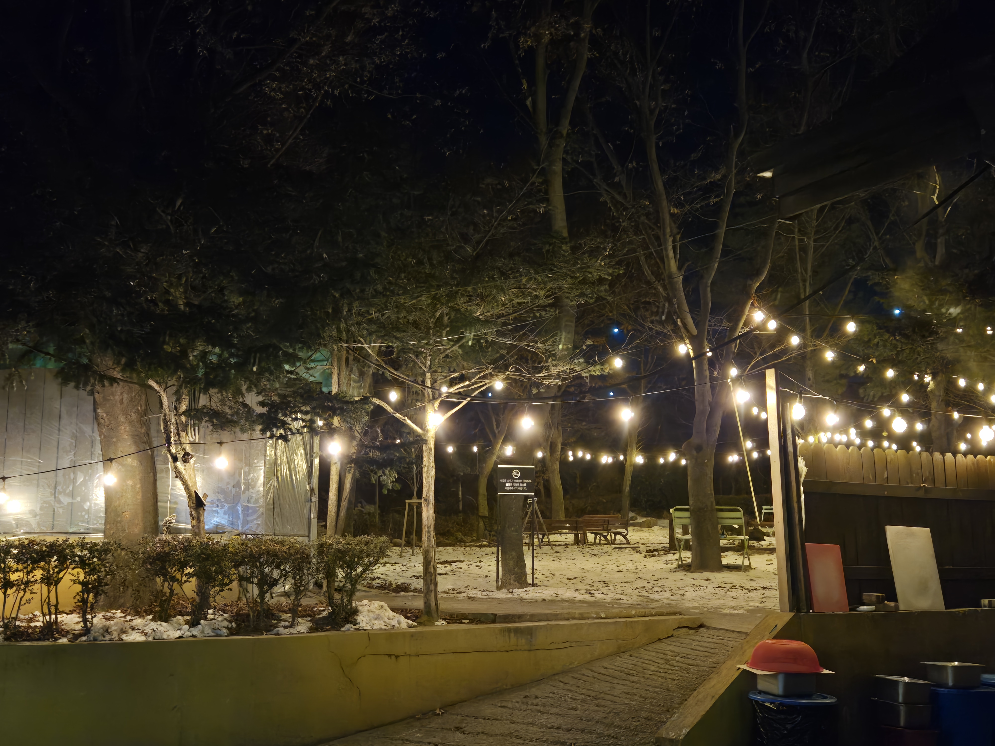 저녁 먹고 나갈때가 되니 해가 져서 예쁜 알전구가 켜진 휴식공간도 눈에 들어왔는데요~