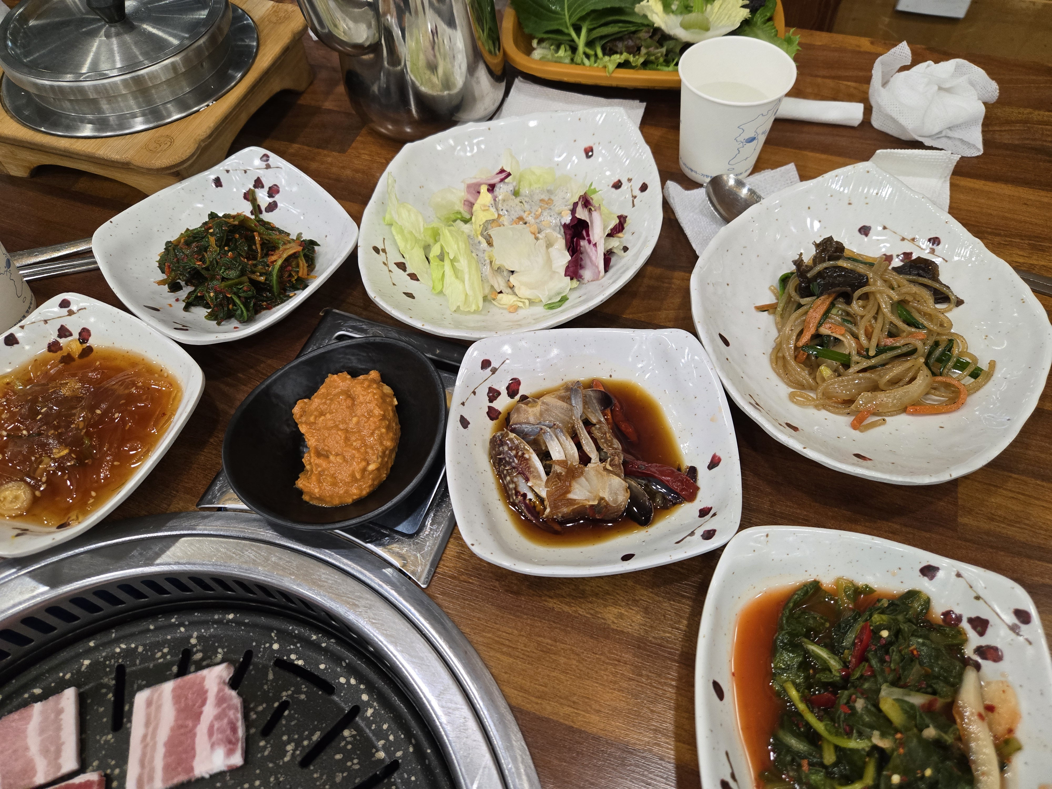 우뭇가사리, 나물, 양상추샐러드, 간장게장, 잡채, 열무김치까지!!