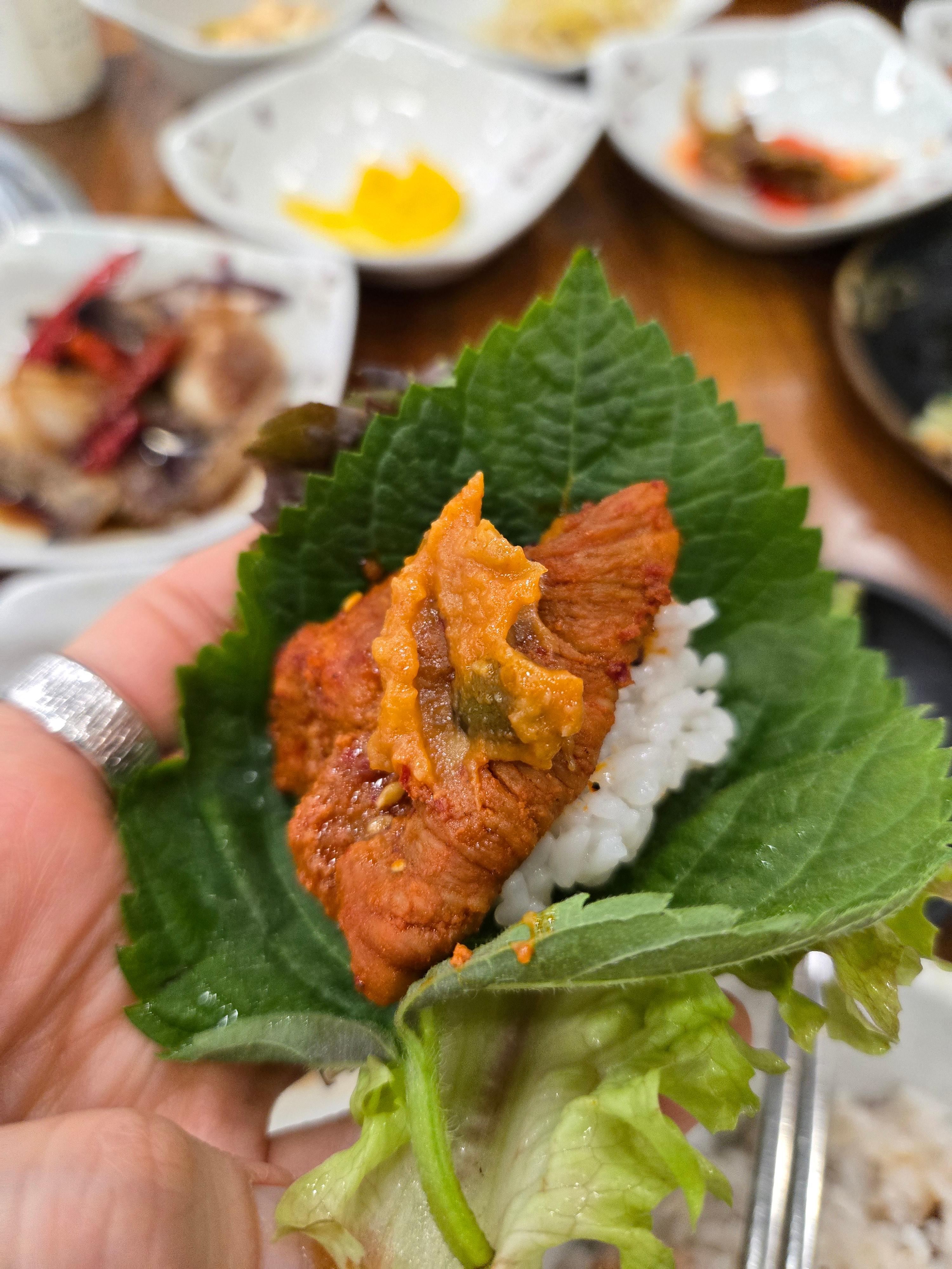 신선한 쌈야채에 싸먹고 다양한 반찬을 곁들여먹으니 맛있었습니다.