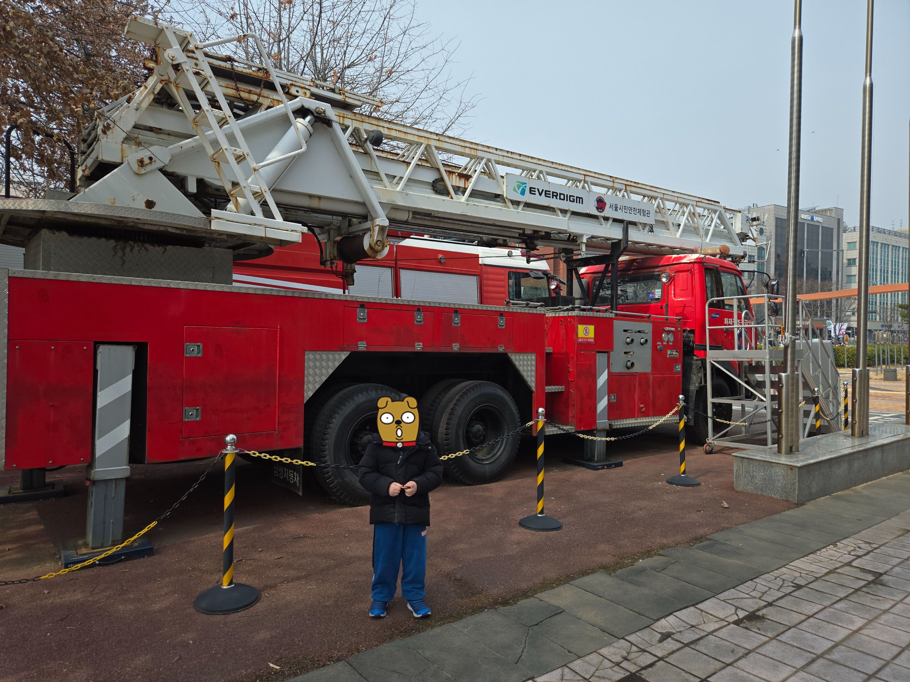 광나루안전체험관에 들어가니 소방차가 있어서 인증사진도 찍어보았습니다.