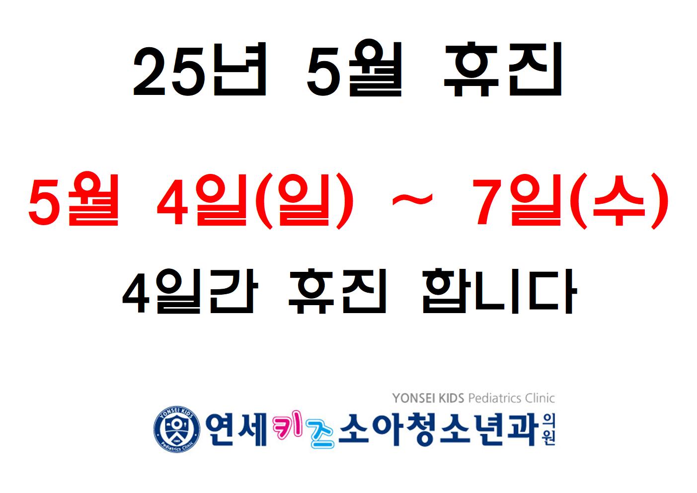 25년 5월 4일(일)부터 7일(수)까지 4일간 휴진합니다.