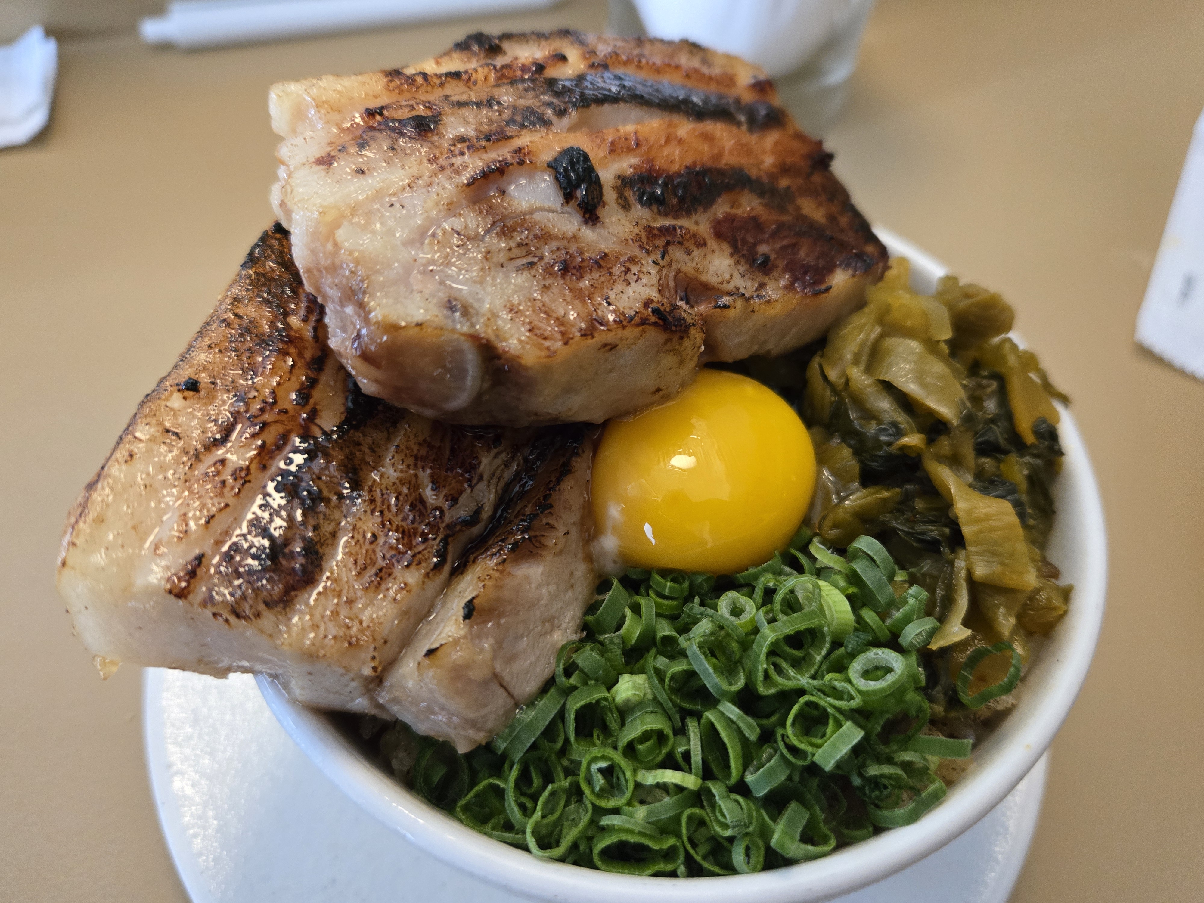버터라이스에 크리스피 포크밸리, 훈연 오이피클, 아부라간장, 계란을 얹은 라이스였습니다.