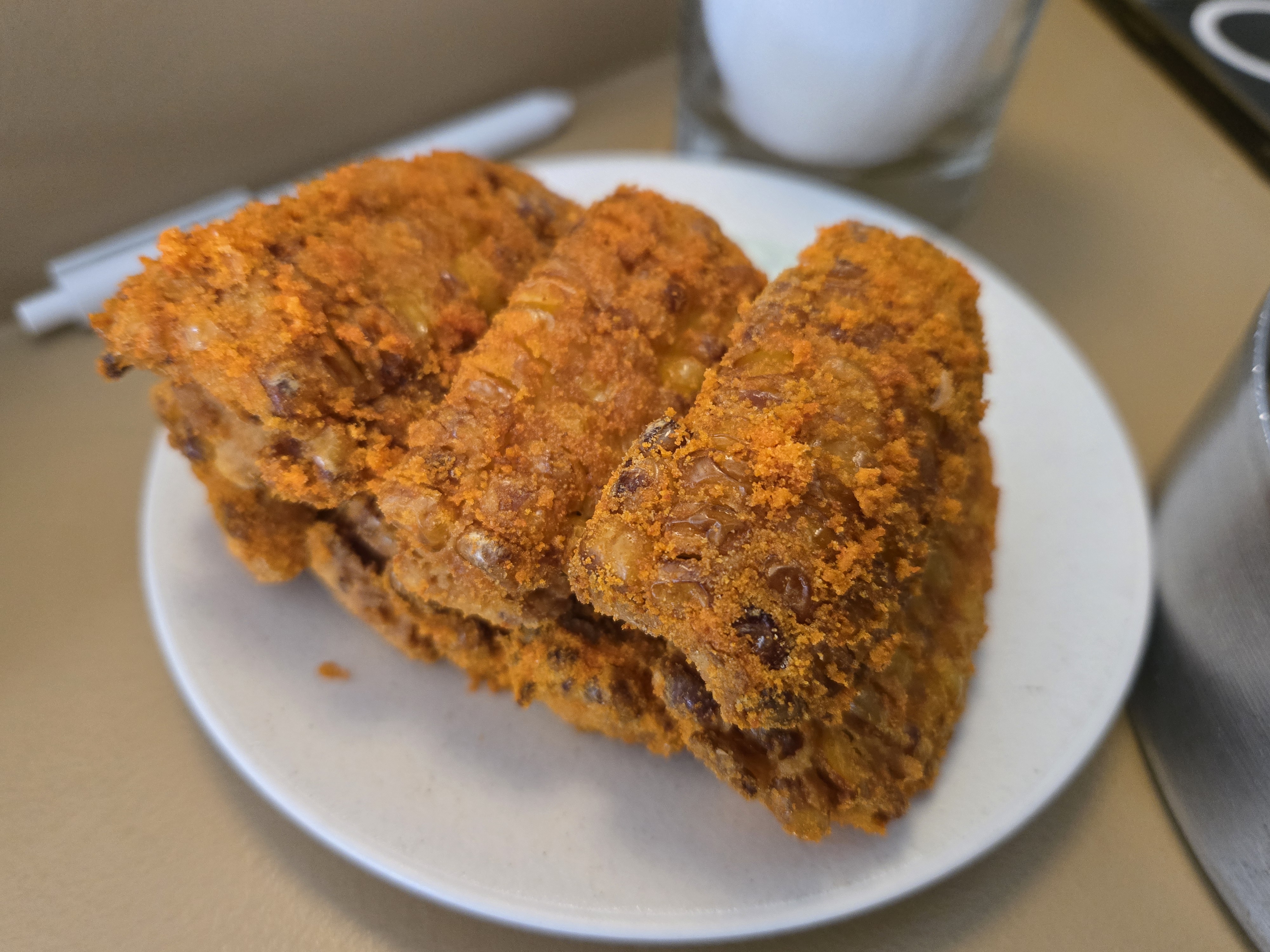 바삭하게 튀긴 초당 옥수수에 스파이스 파우더, 딜 사워크림을 곁들여 먹는 콘립도 주문해보았습니다.