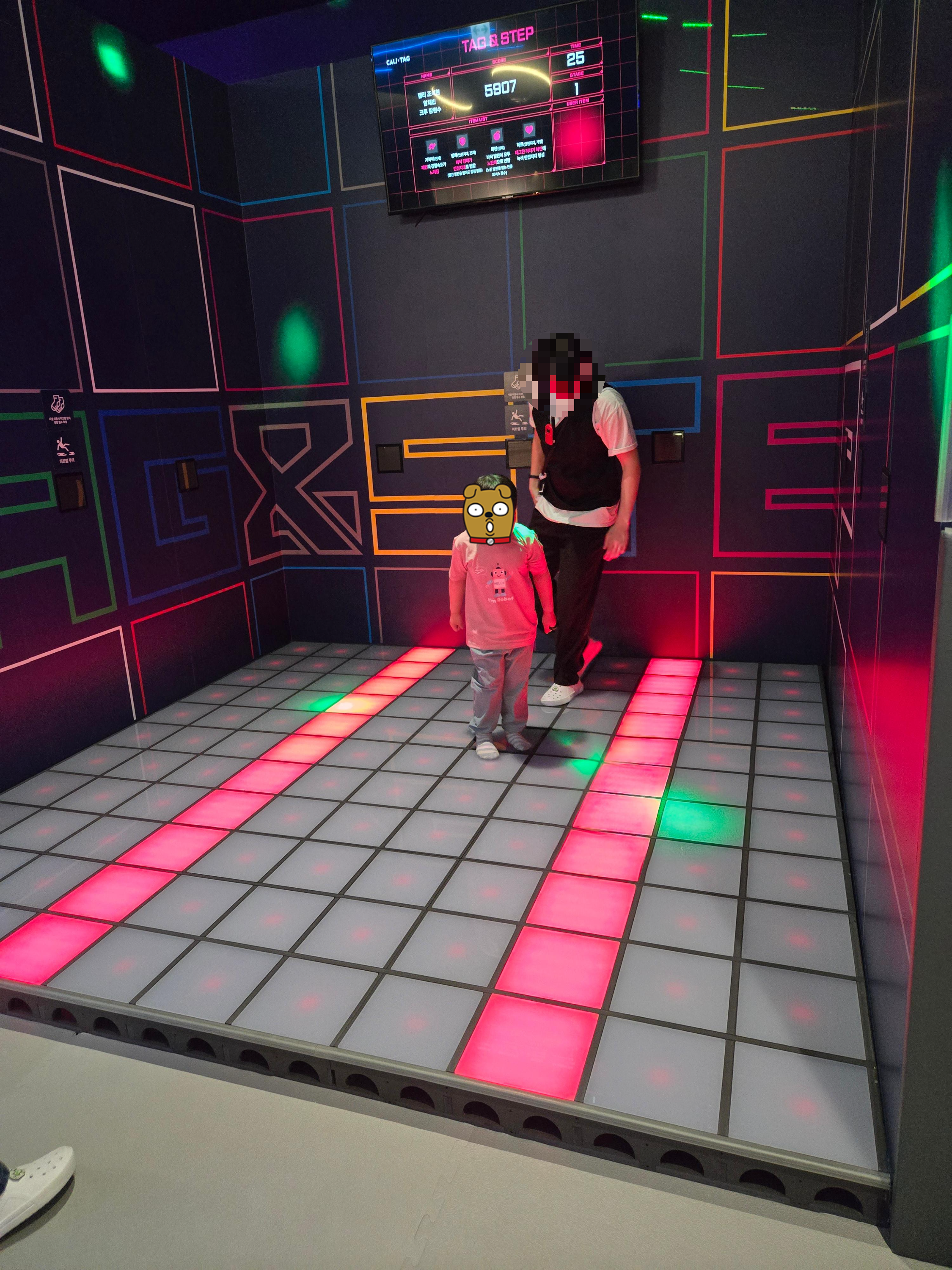 입장할 때 받은 팔찌로 태그하면서 아이가 얼마나 걷고 칼로리를 소비하는지 보호자가 앱으로 확인도 가능했습니다.