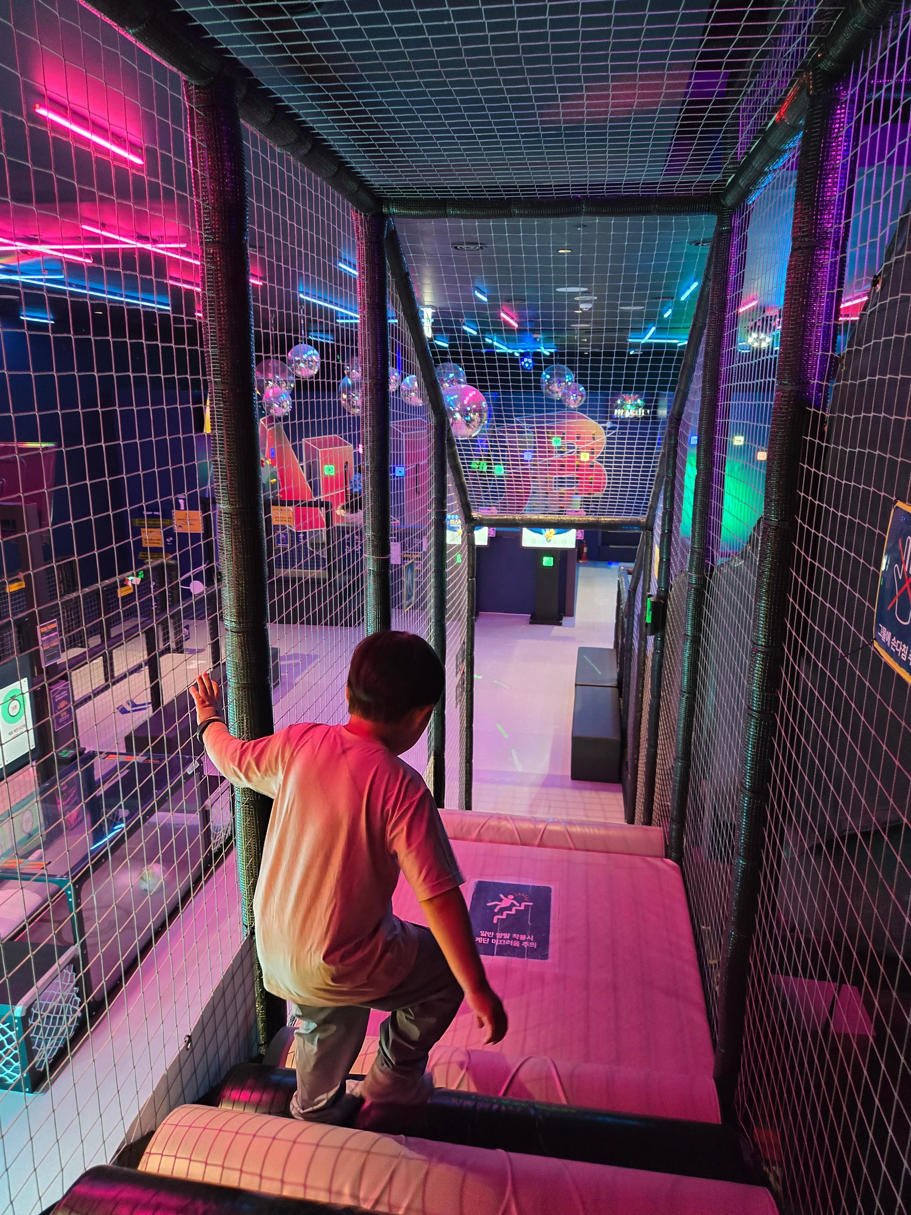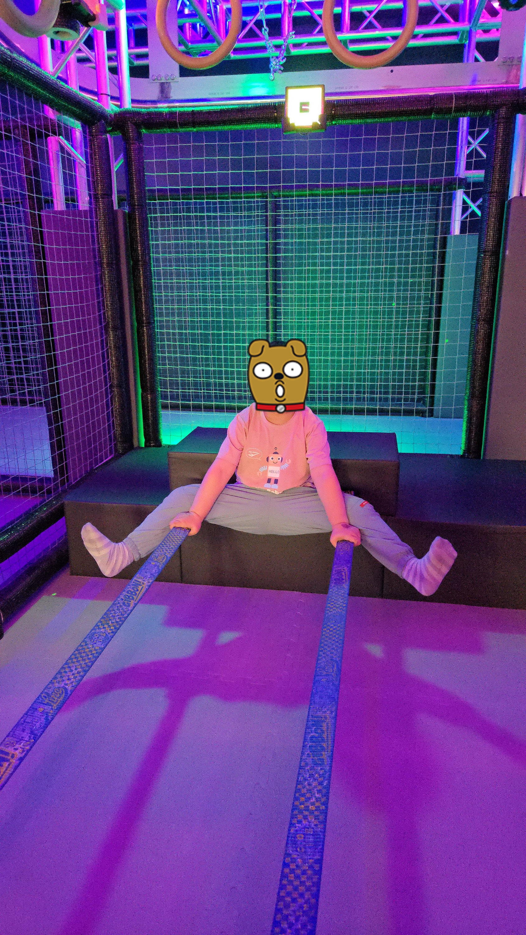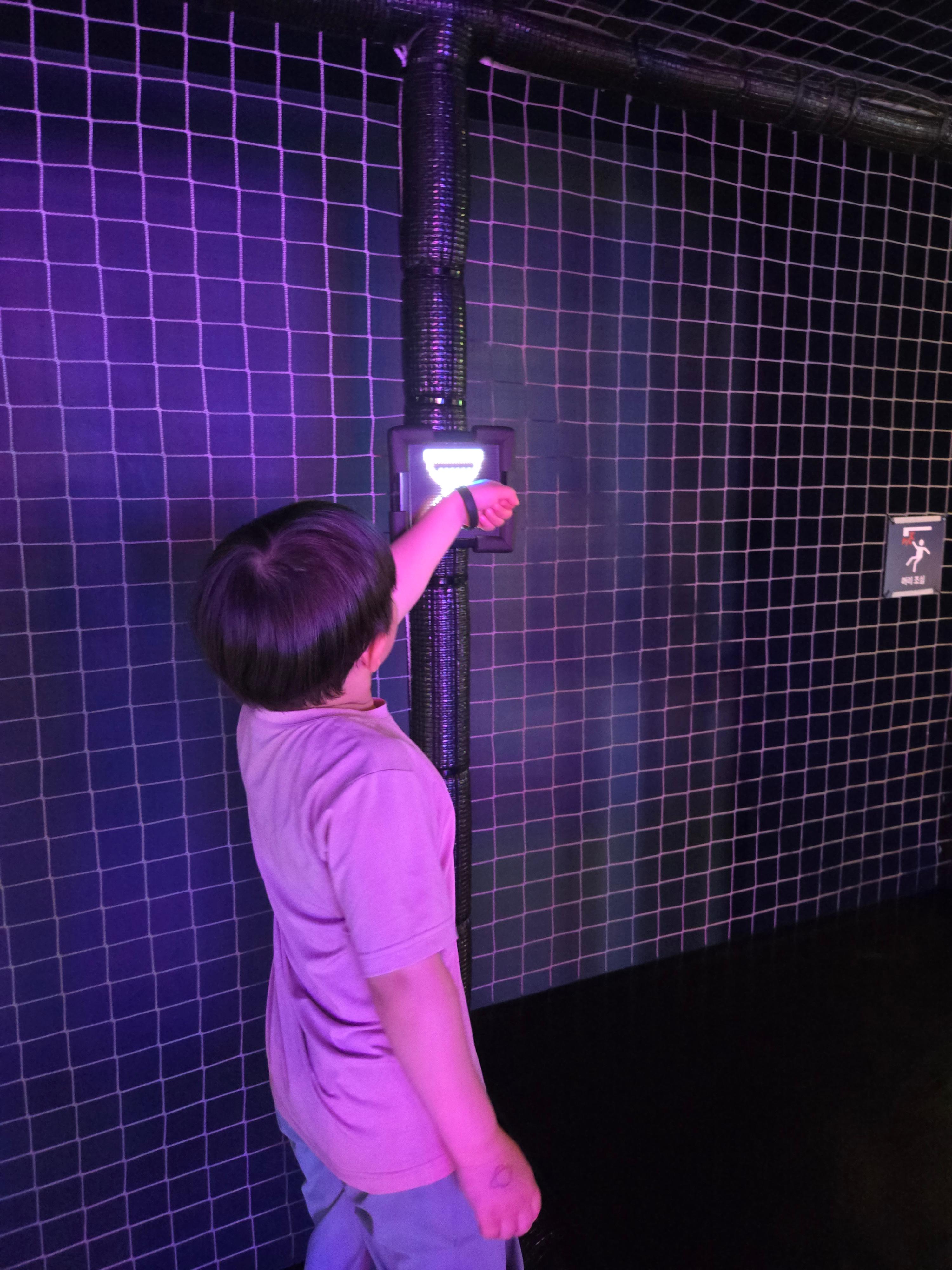 벽 꼭대기에 태그를 할 수 있는 활동도 있어서 아이들이 쉴 틈 없이 움직이게 만드는 키즈카페였네요 ^^