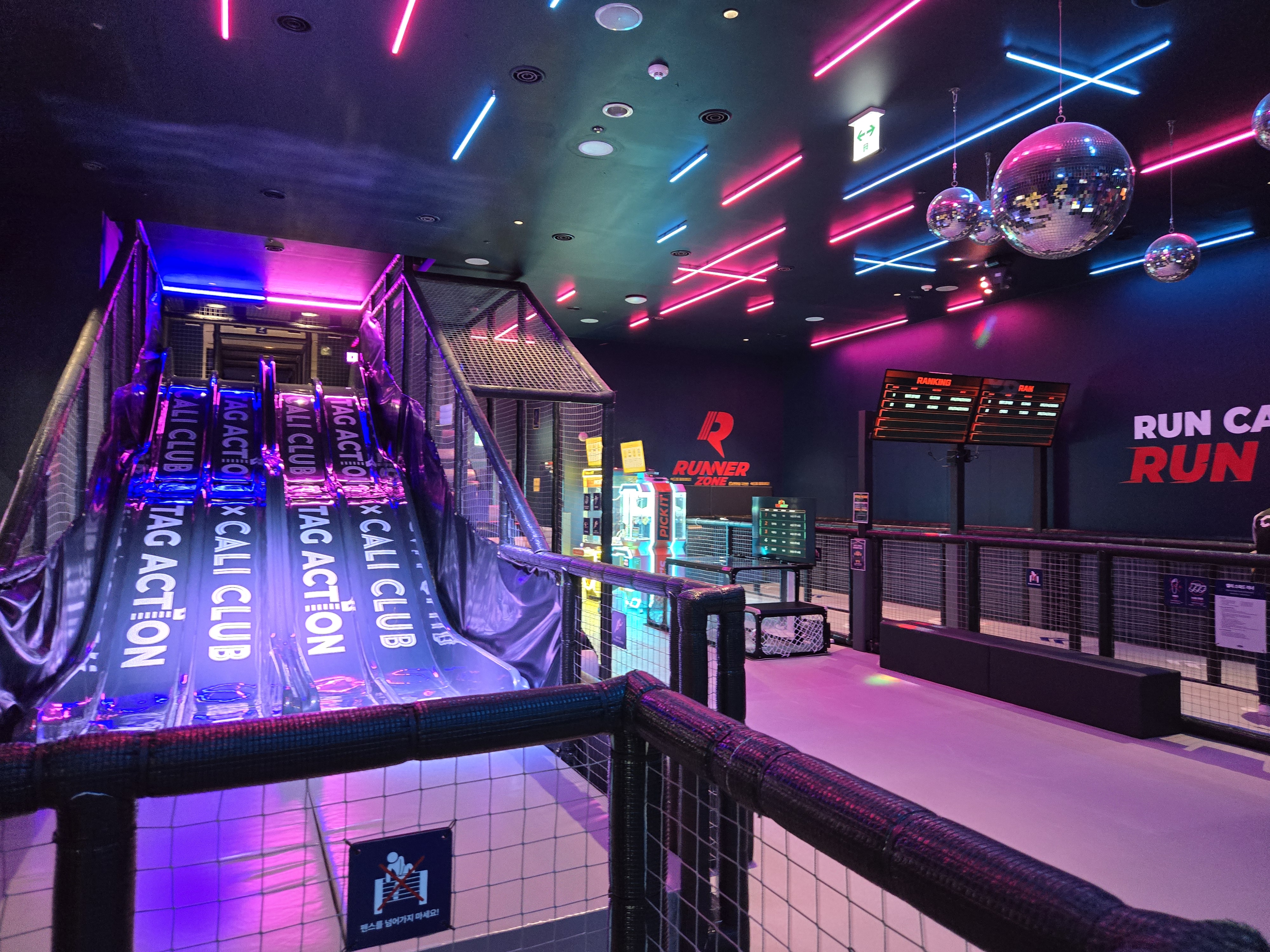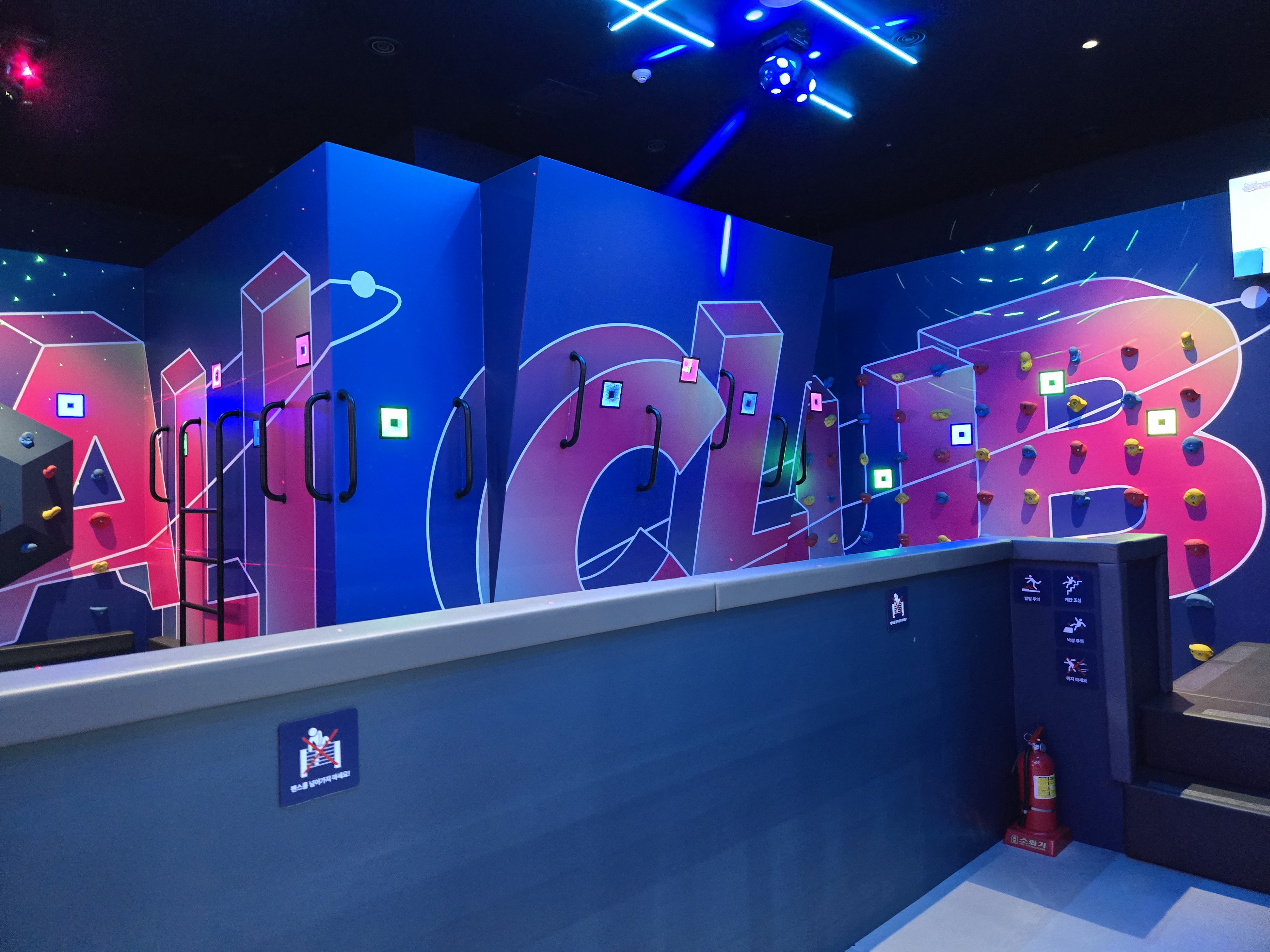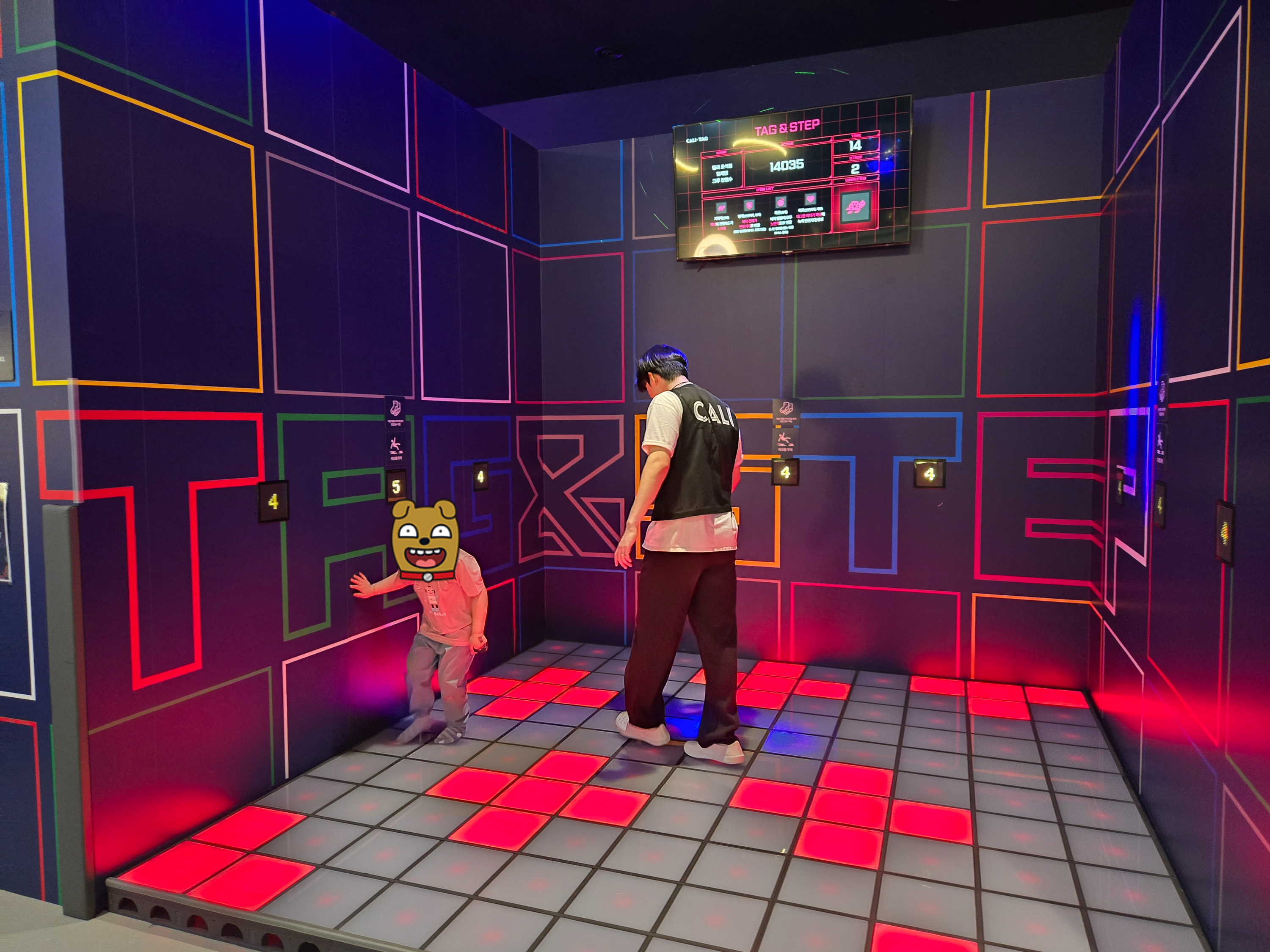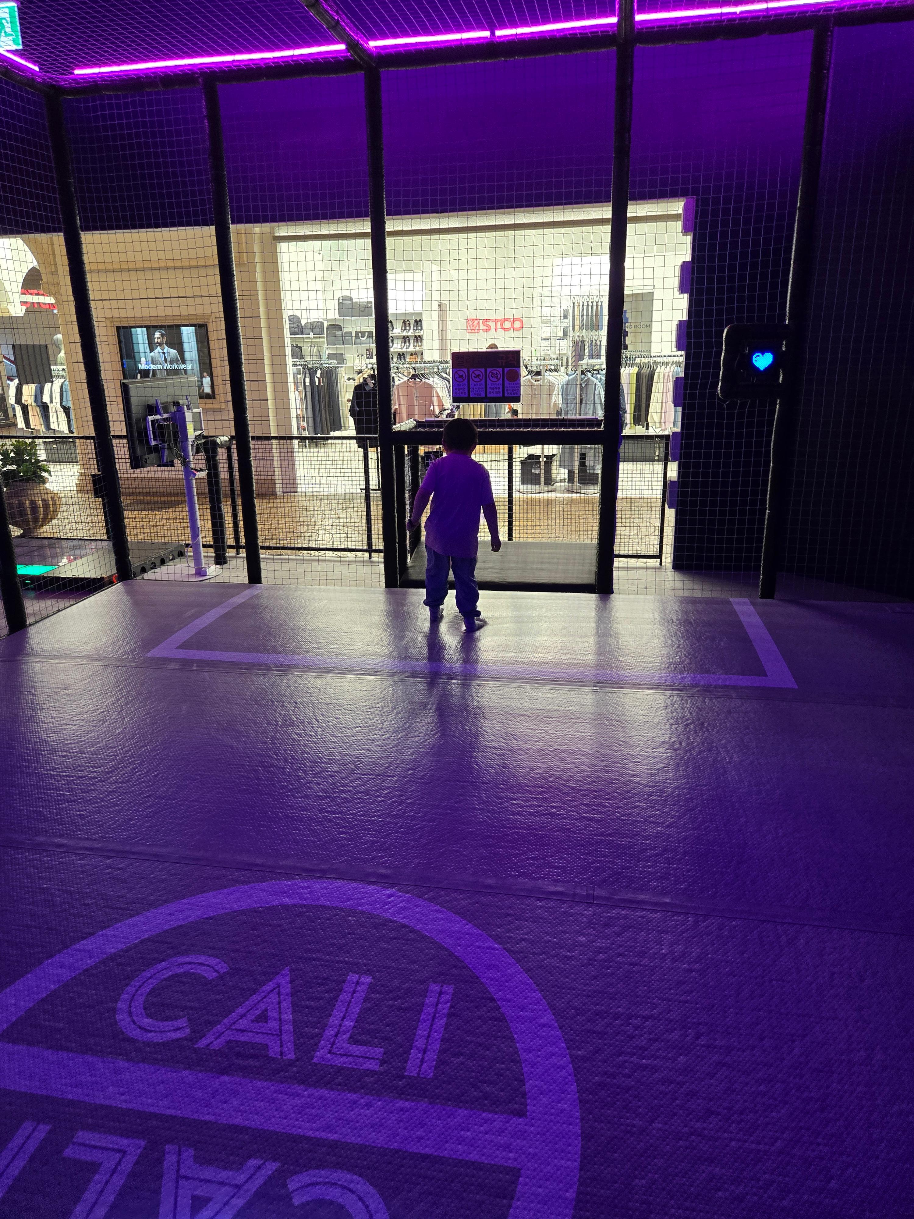 벽 꼭대기에 태그를 할 수 있는 활동도 있어서 아이들이 쉴 틈 없이 움직이게 만드는 키즈카페였네요 ^^