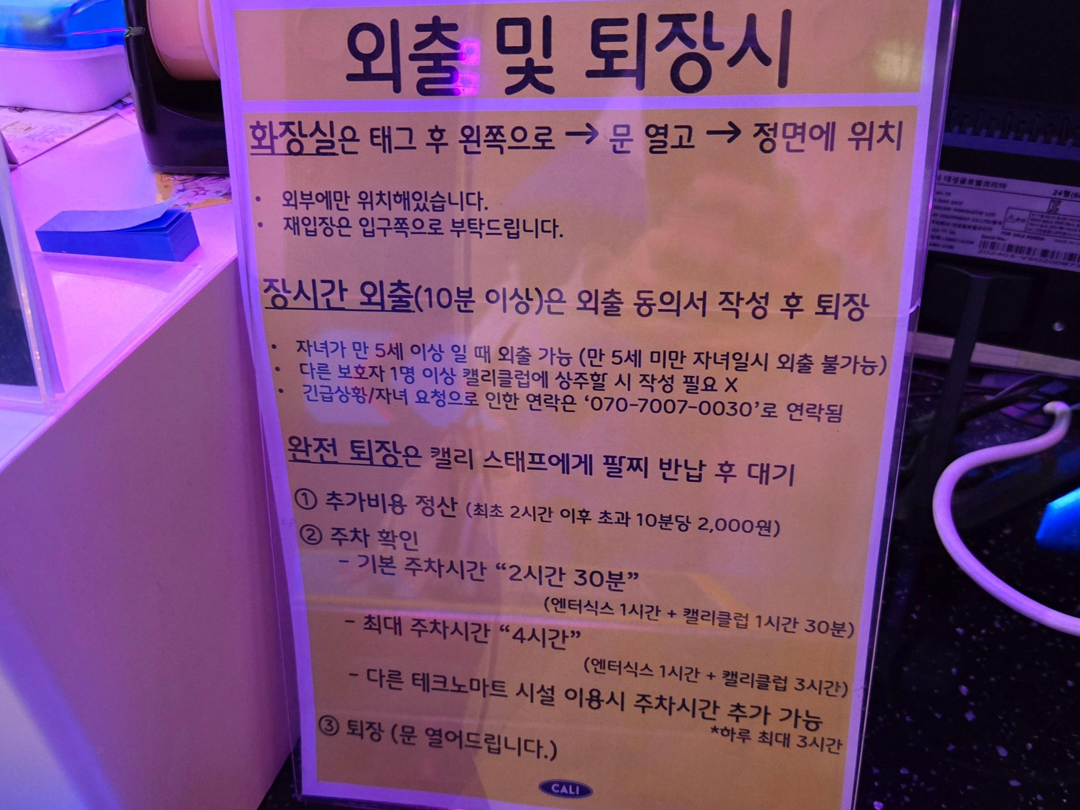외출 및 퇴장에 대한 상세한 설명도 잘 적혀있고, 주차시간도 넉넉하게 주셔서 추가 주차비 없이 잘 놀고 왔네요~