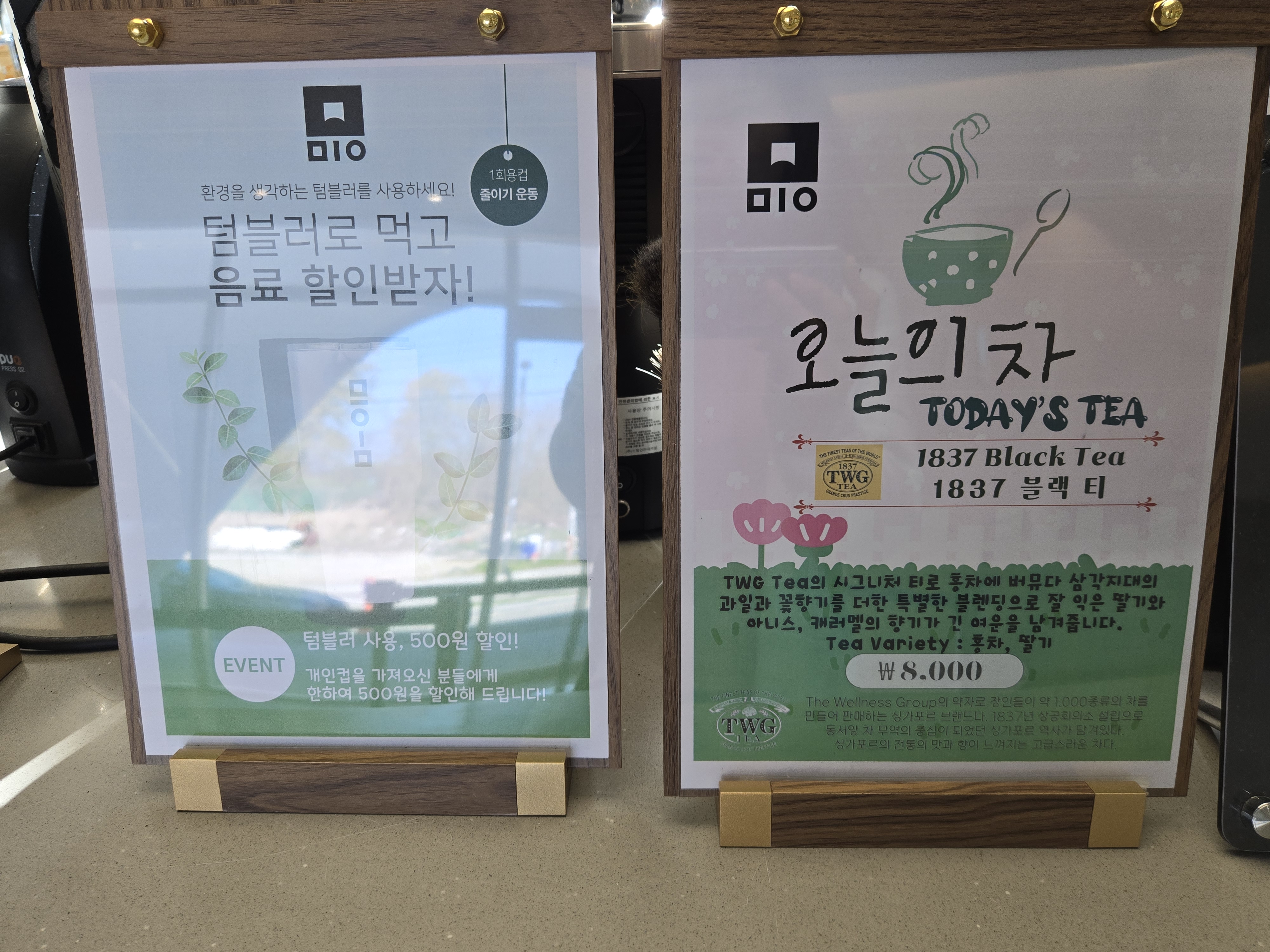 카페 미음에서는 텀블러로 음료 할인도 가능하다고 하네요~