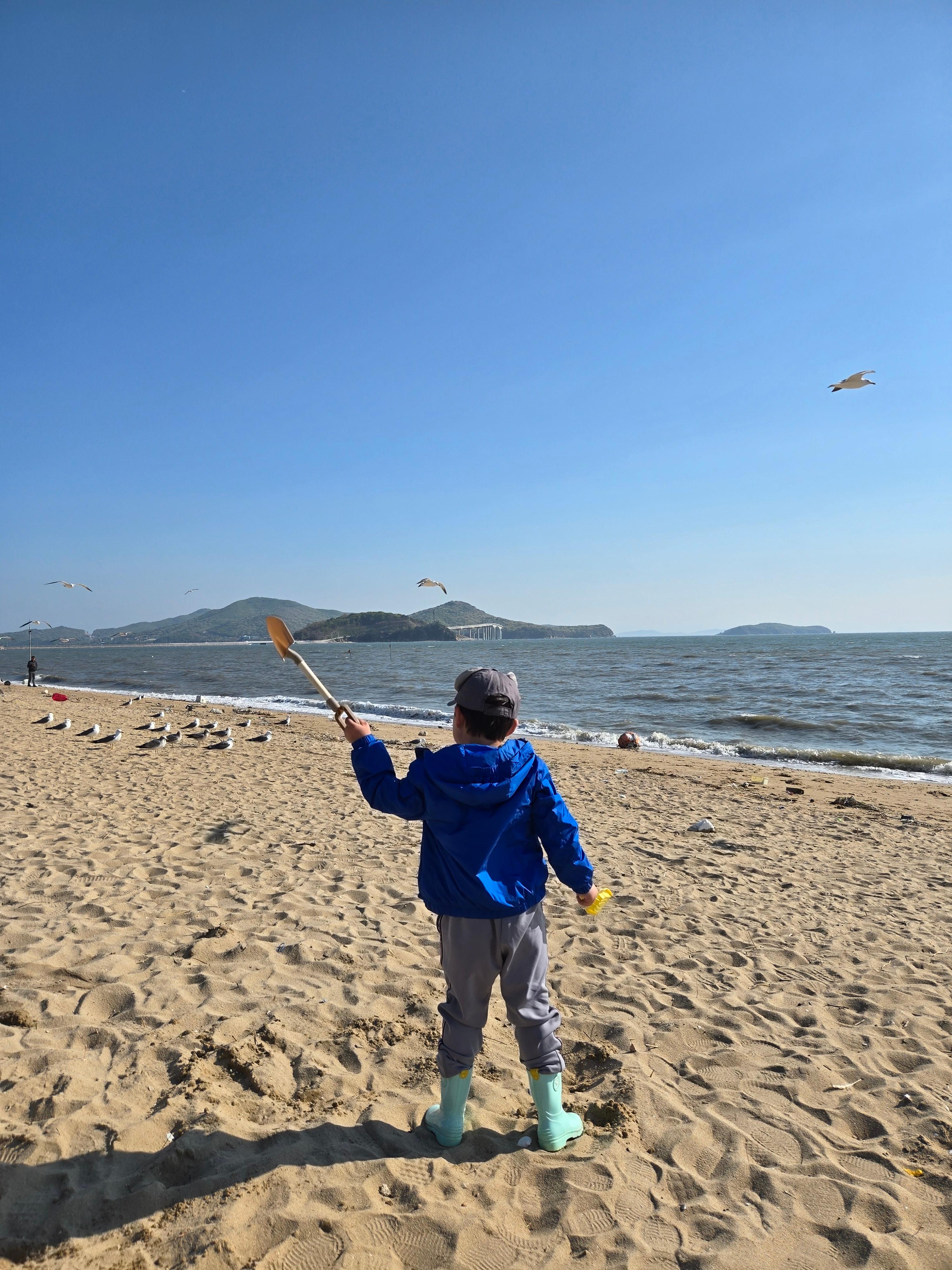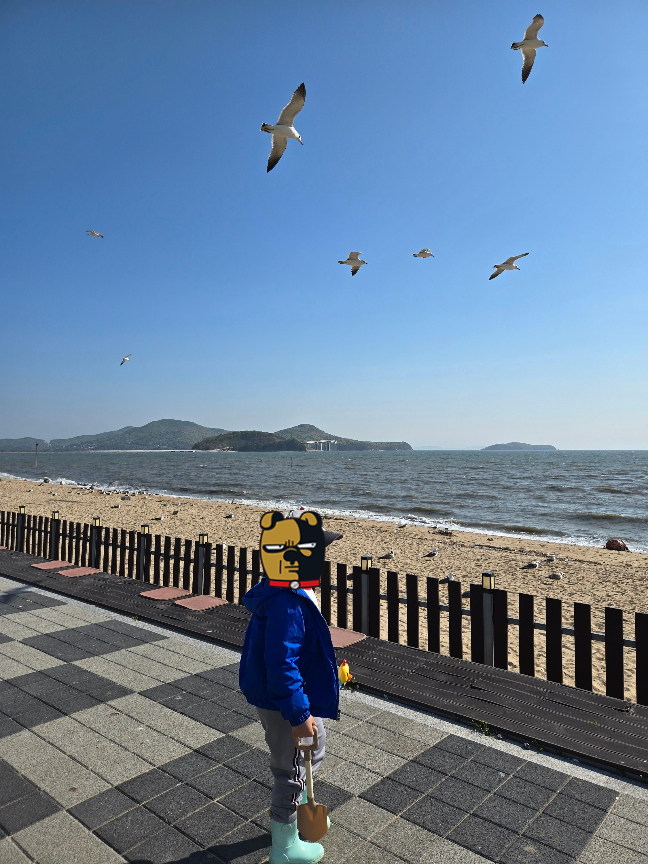 커피와 빵을 좀 맛본 후 모래사장에 가고 싶다는 아이와 함께 밖에 나가보았습니다.