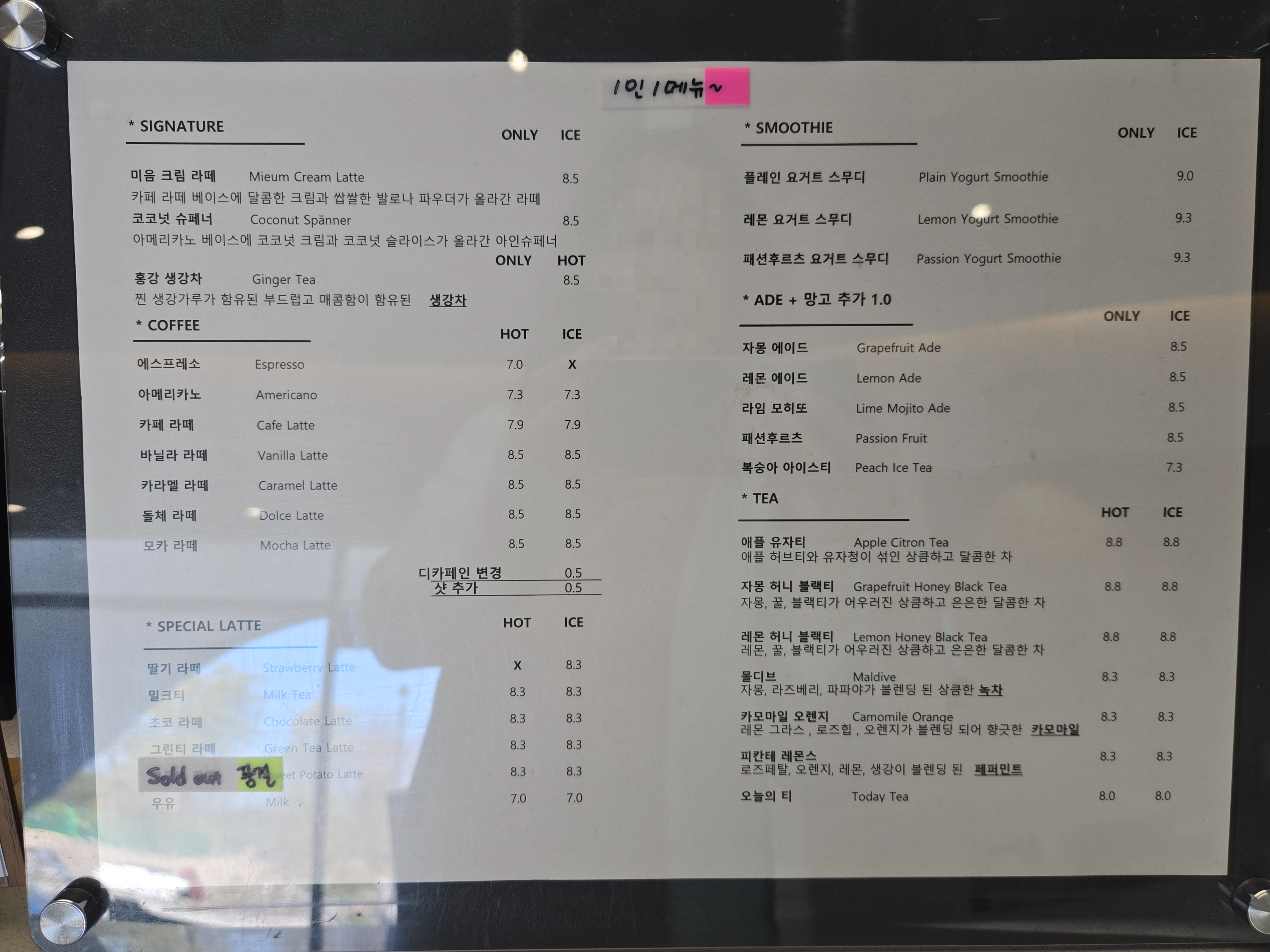 핫과 아이스 모두 가격은 동일하더라구요.
