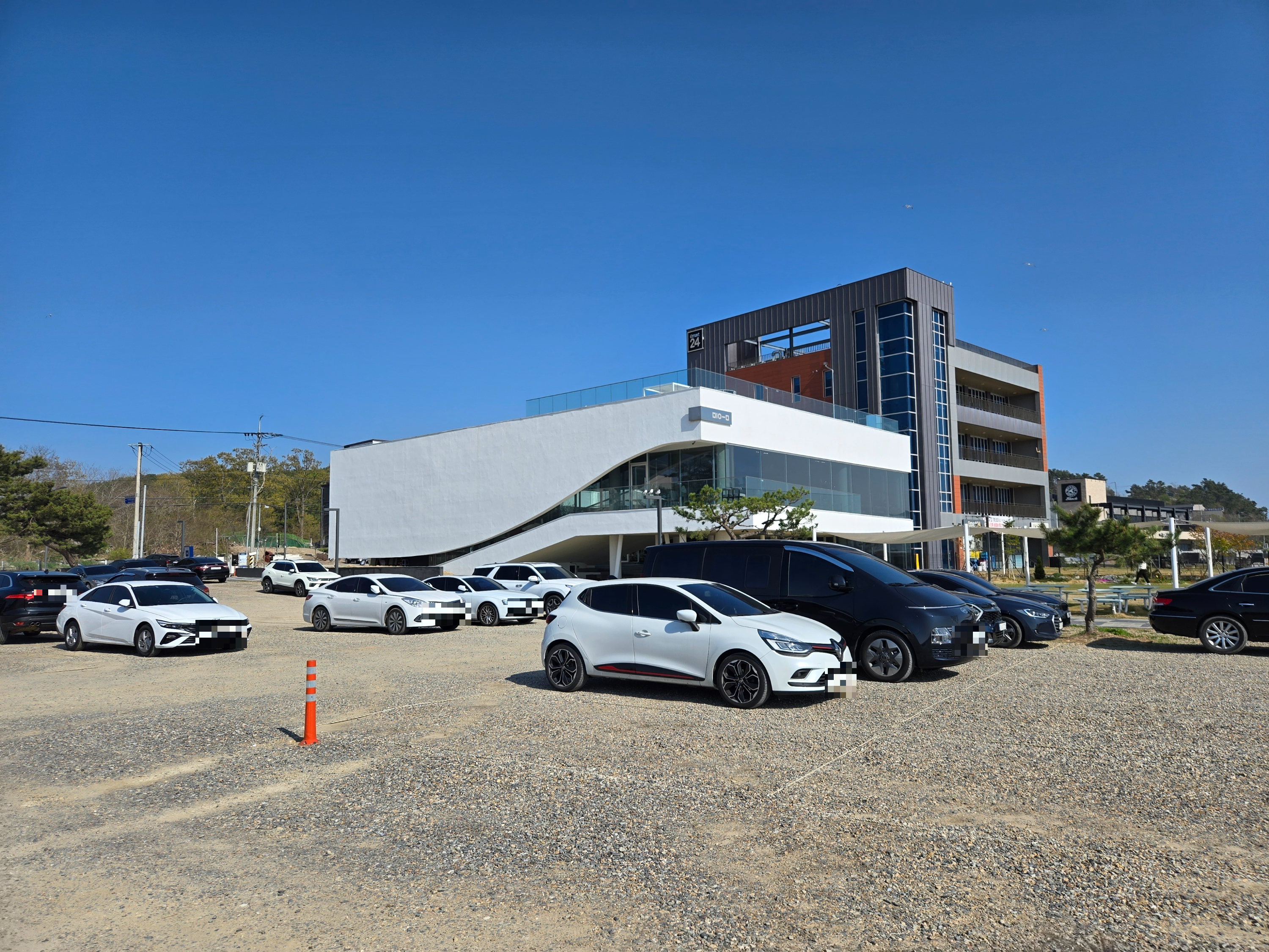 바닷가가 보이는 곳에 있는 카페로 주차장이 넓게 마련되어 있었습니다.