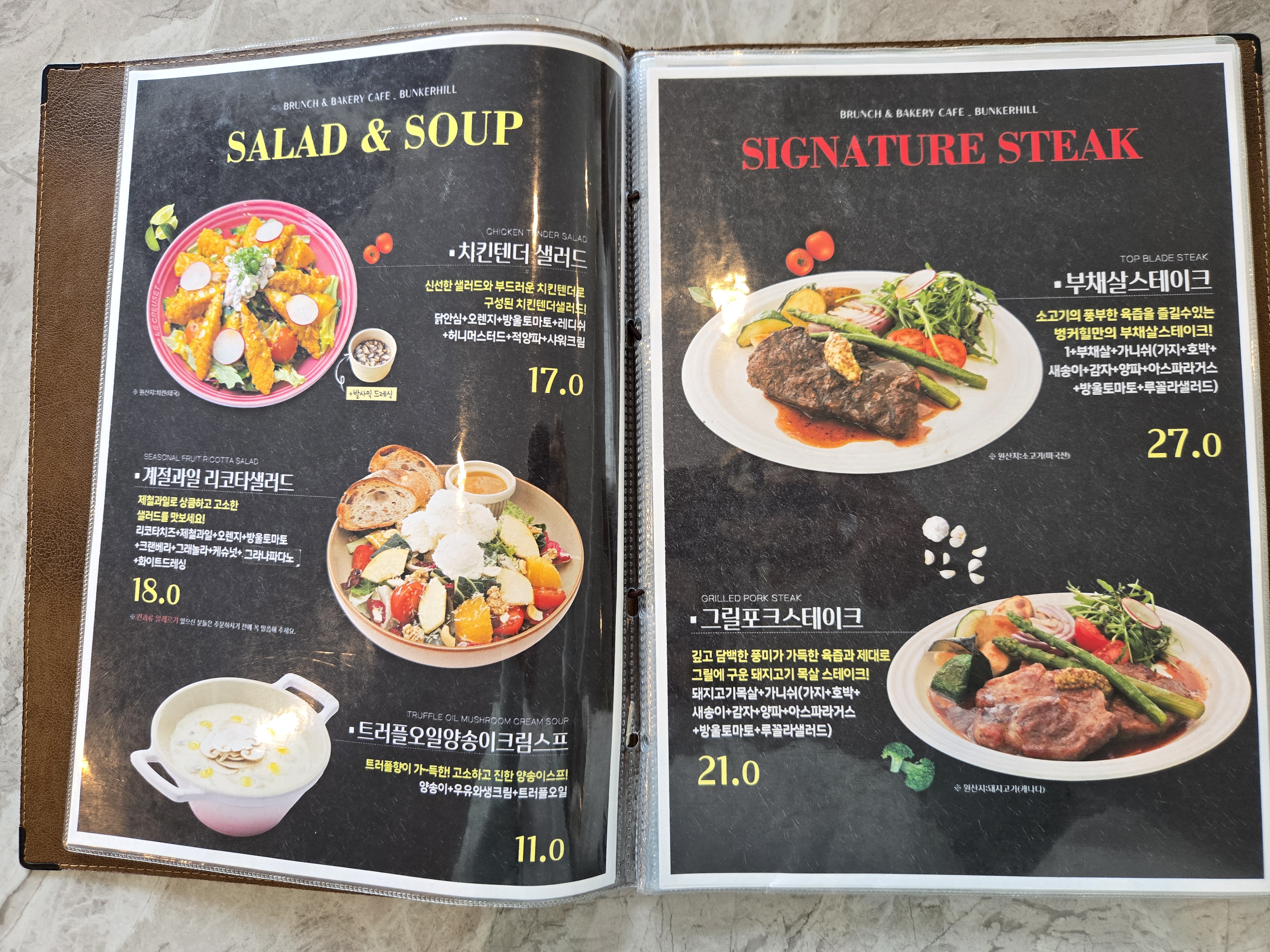 파주의 유럽 분위기의 브런치 맛집 벙커힐의 브런치 메뉴입니다.
