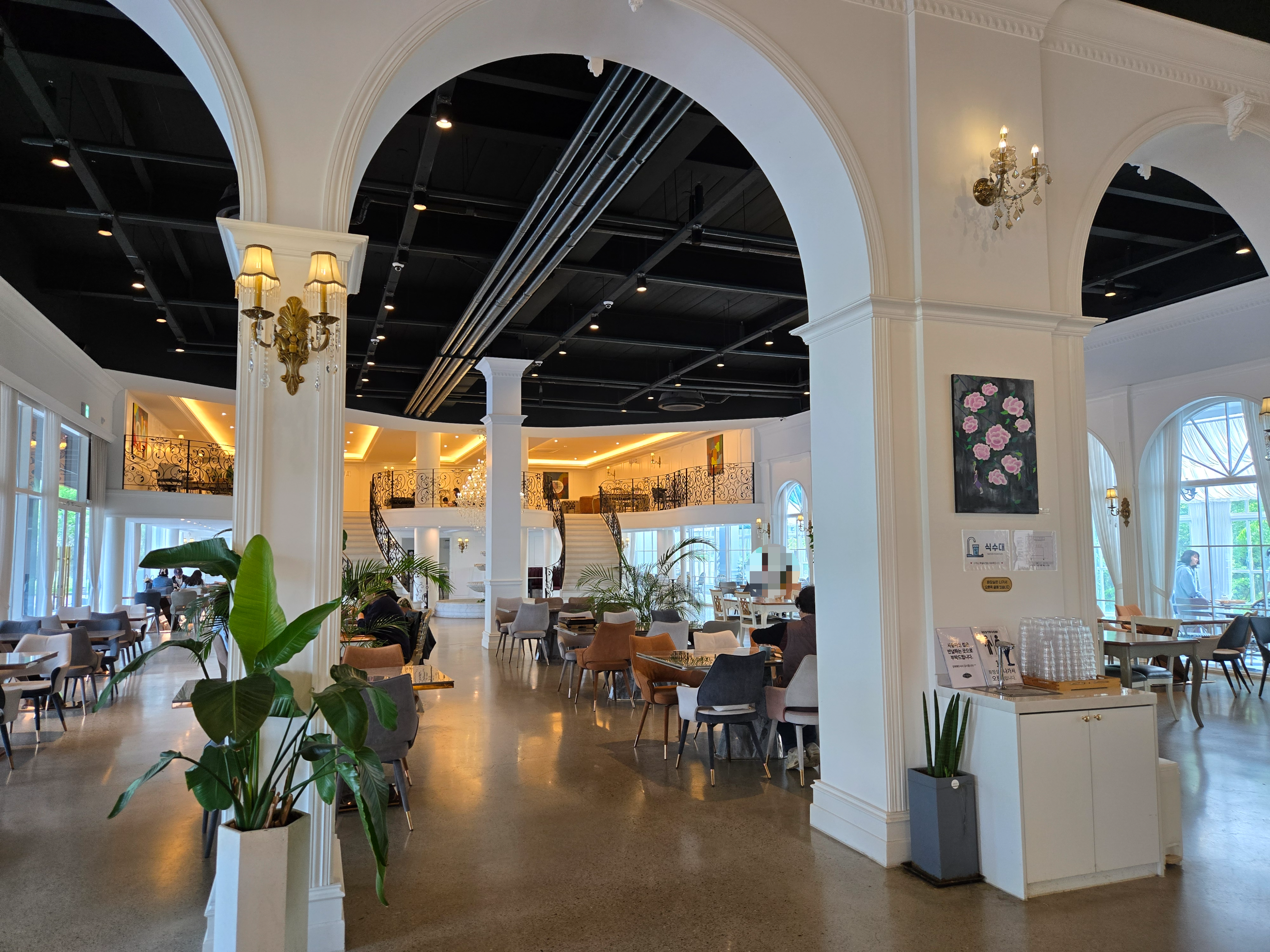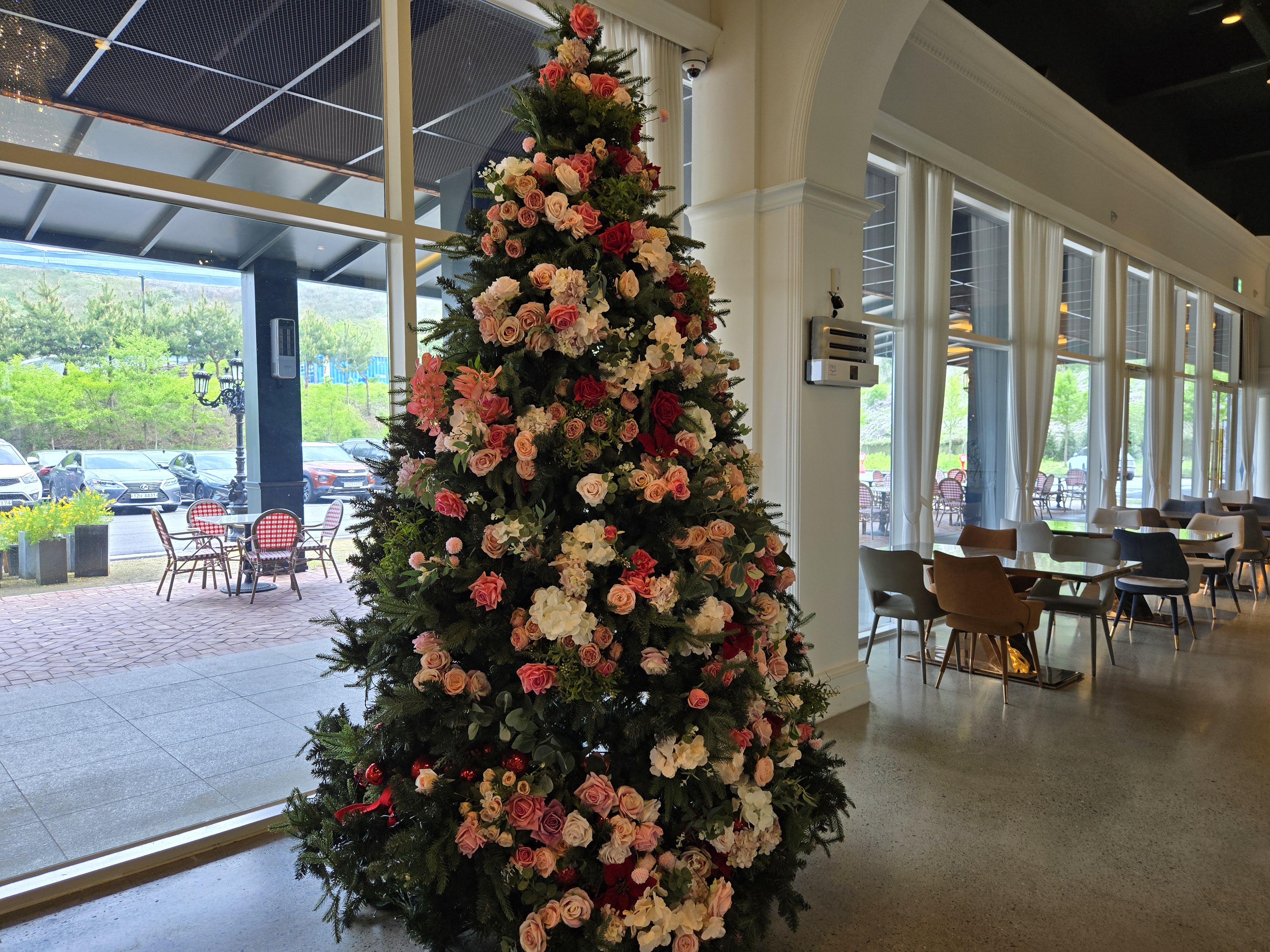 파주 브런치 카페에는 대형 트리도 있고, 기둥이 아치형으로 되어 있어서 유럽 느낌(?)이 나더라구요.