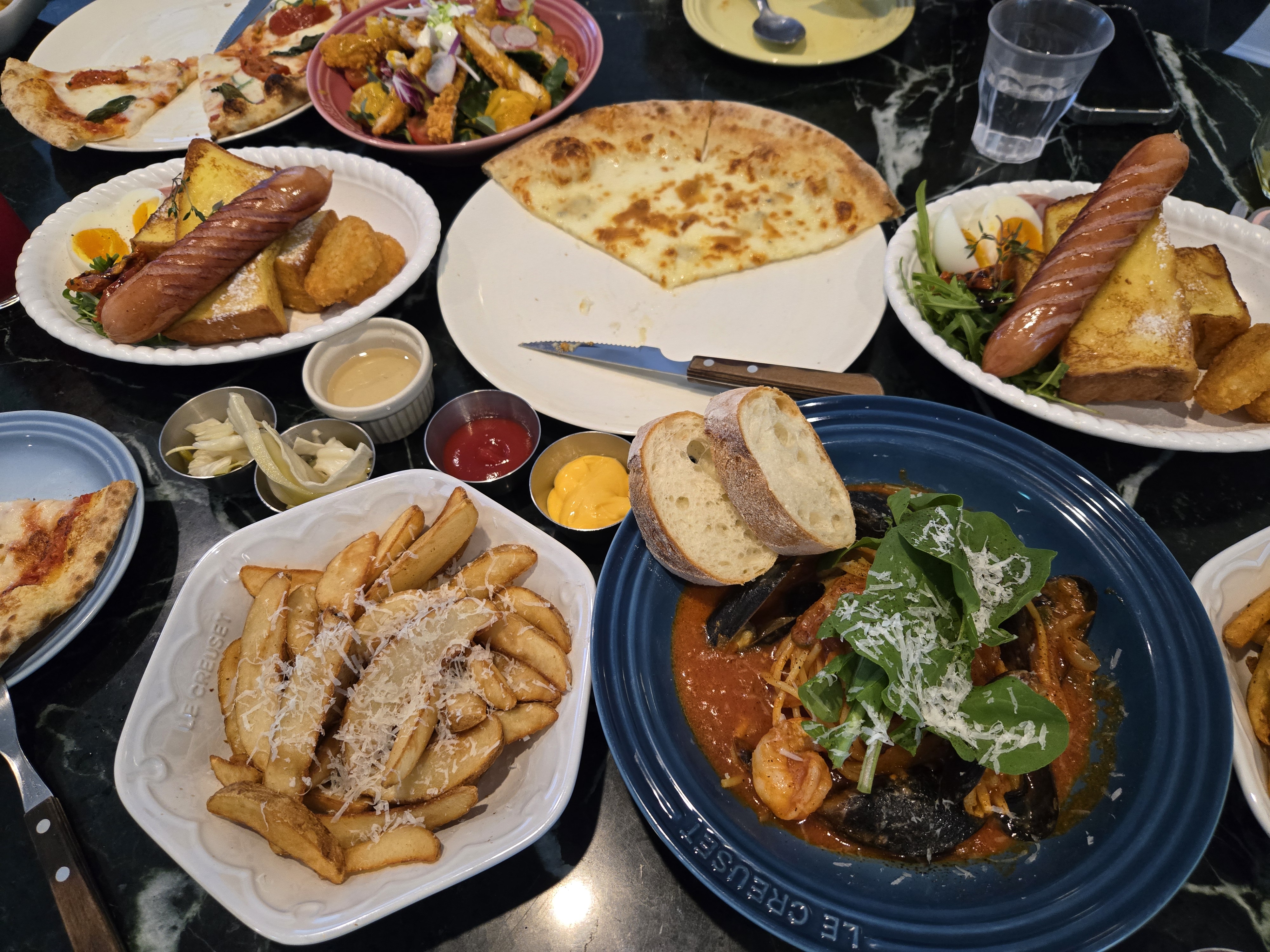 브런치, 샐러드&스프, 시그니처 스테이크, 파스타&리조또, 피자, 칼조네, 굴라쉬, 감바스와 사이드메뉴까지 다양하네요.