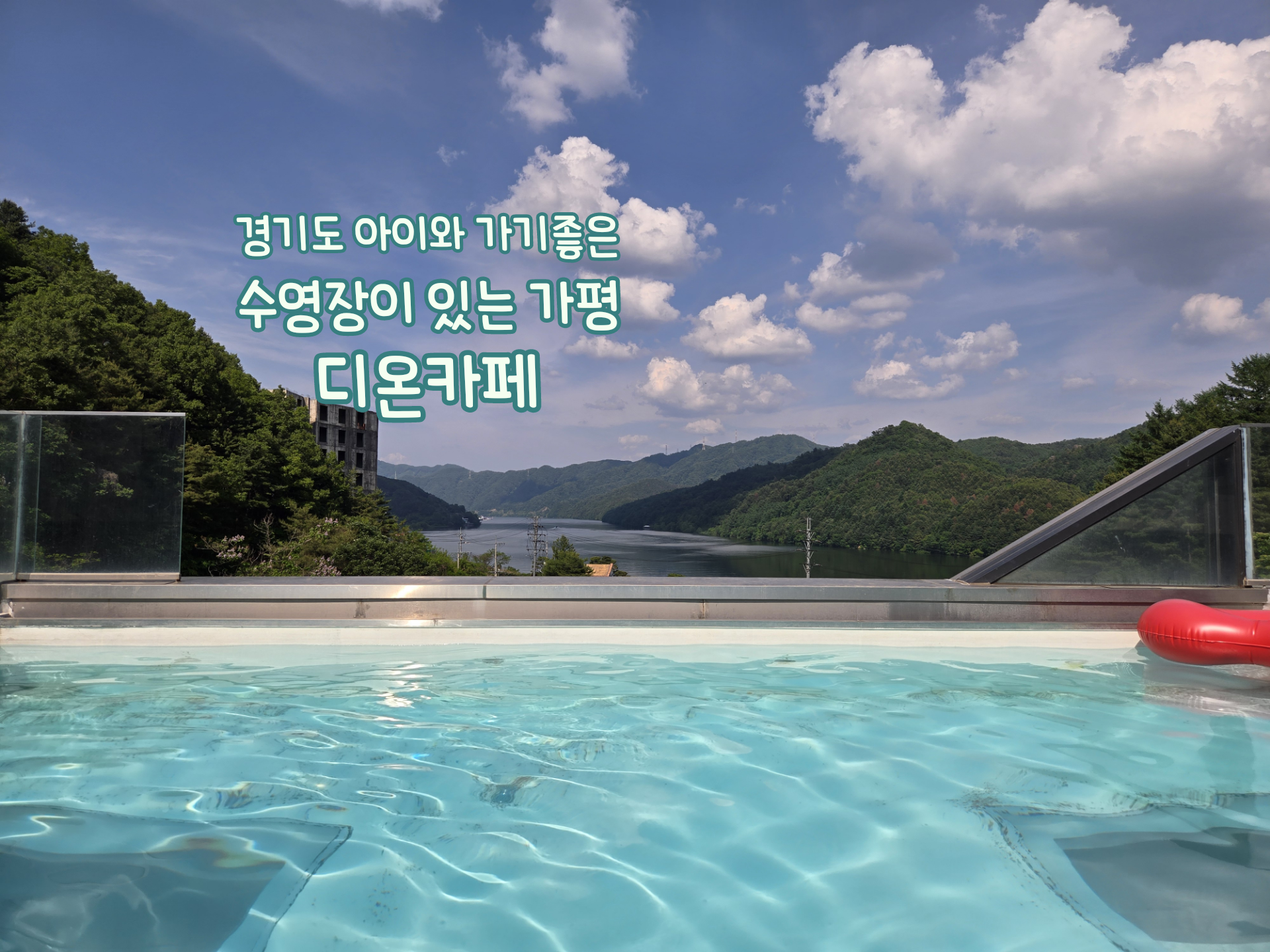 멋진 북한강과 산세가 보이고, 하늘도 아름다워서 좋았던 가평 수영장카페, 디온카페였습니다~