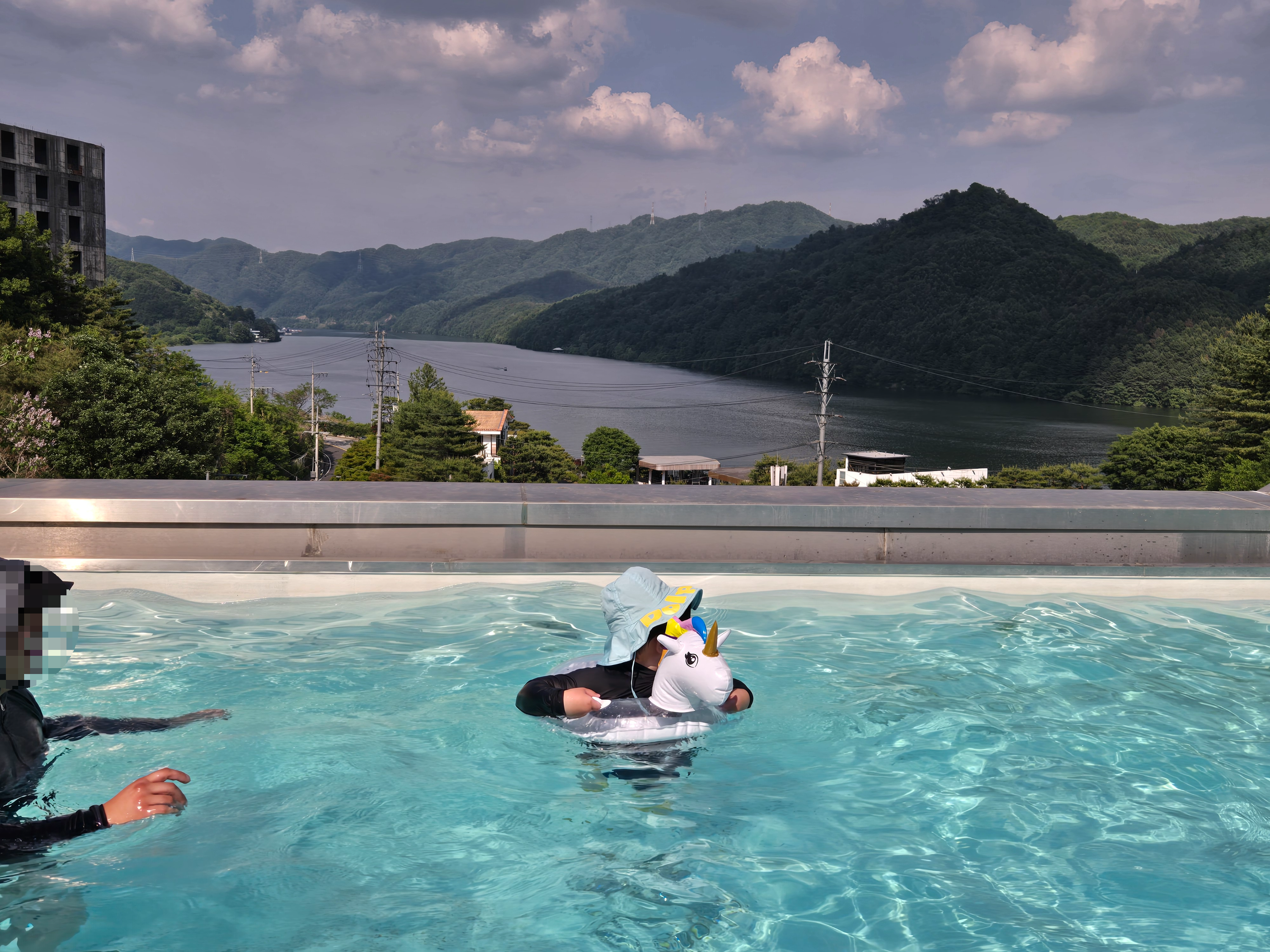 북한강 뷰의 인피니티풀 수영장 카페에서 수영을 즐겨보았는데요~