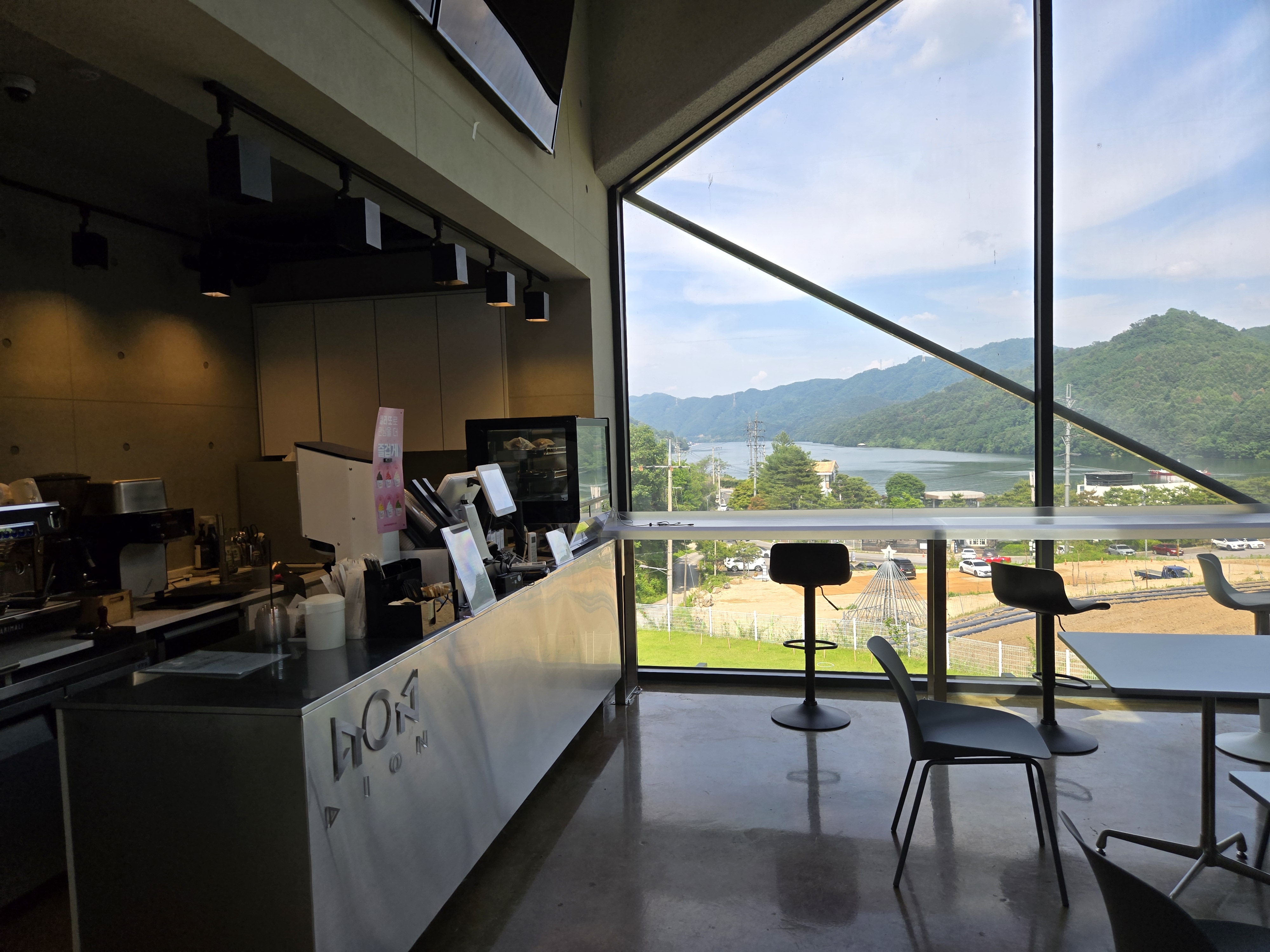 층고가 높고 전면 유리창이라 탁 트인 느낌이 좋았습니다.