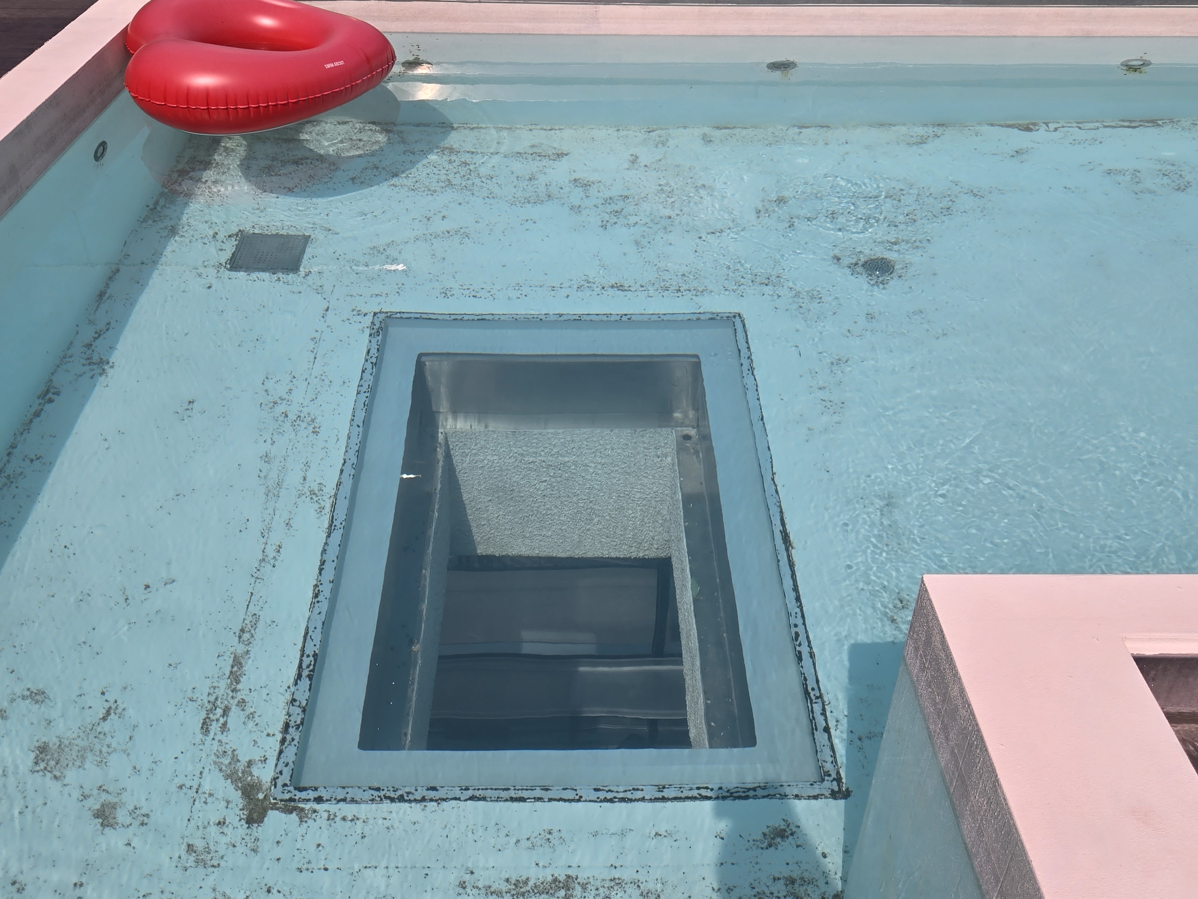 가운데에 있는 작은 공간은 목욕탕 만큼 따뜻한 물이었고, 나머지 면적은 미온수였습니다.