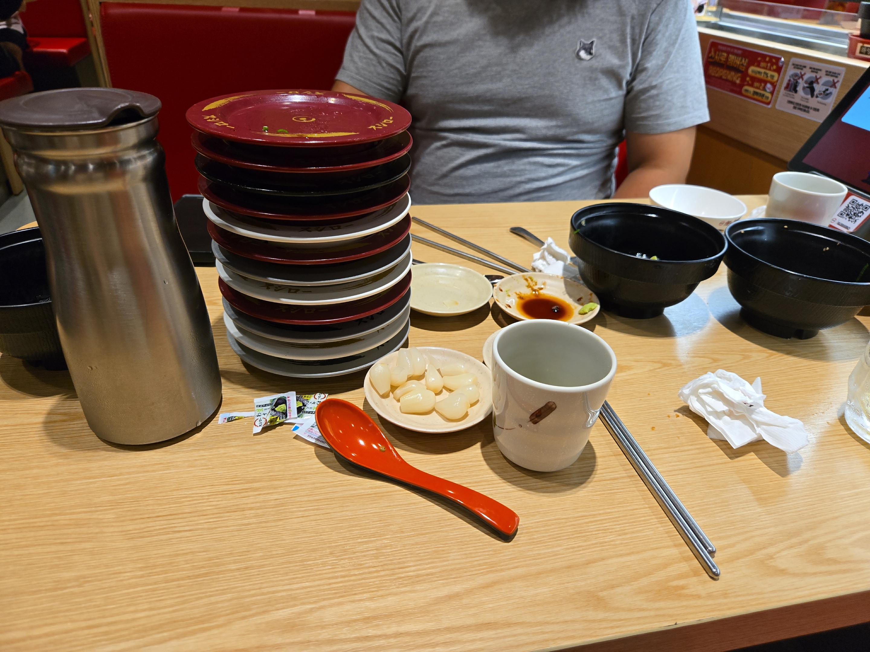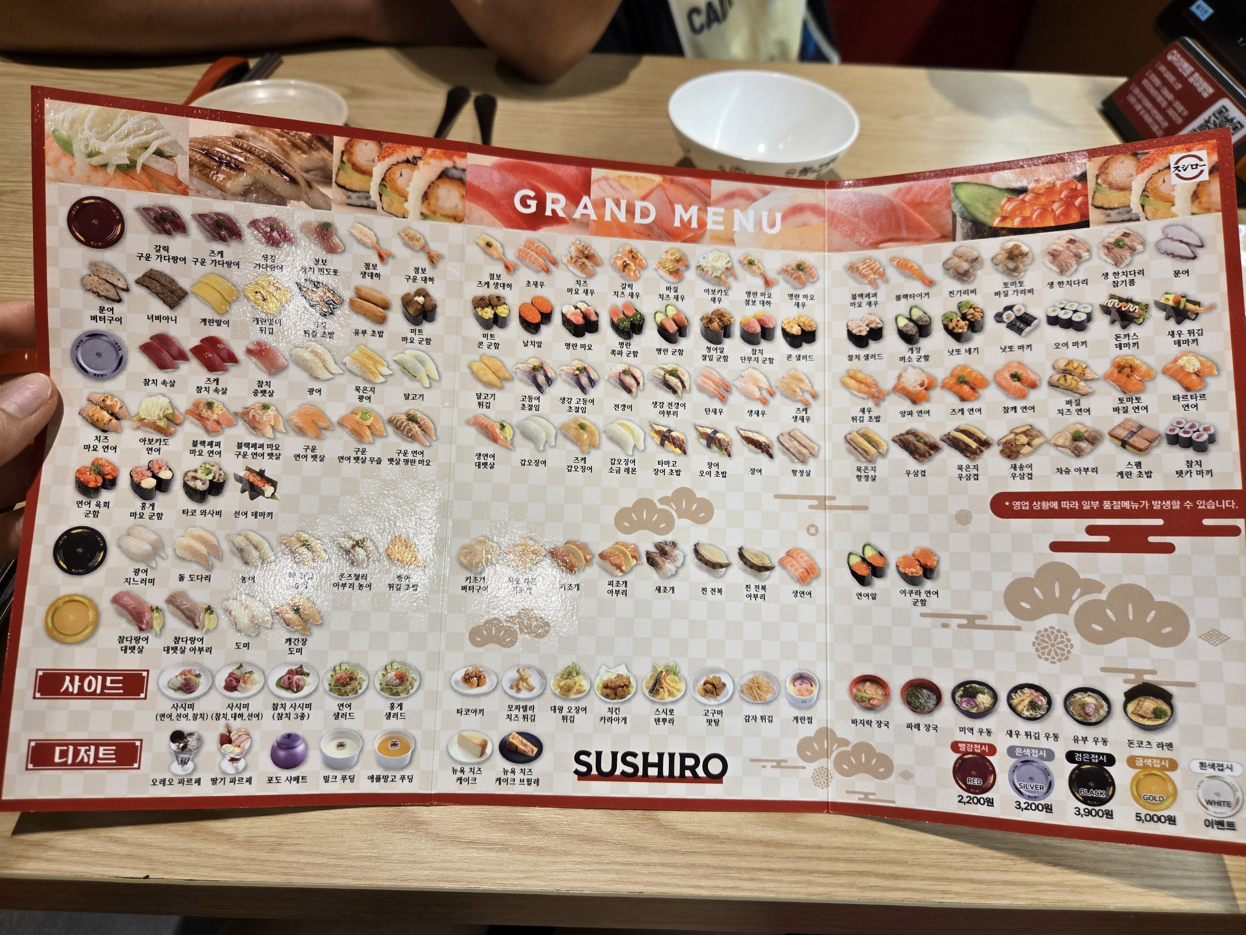 테이블마다 컬러가 있어서 본인 테이블 컬러 접시의 초밥을 가져다 먹으면 되는 시스템입니다 ^^