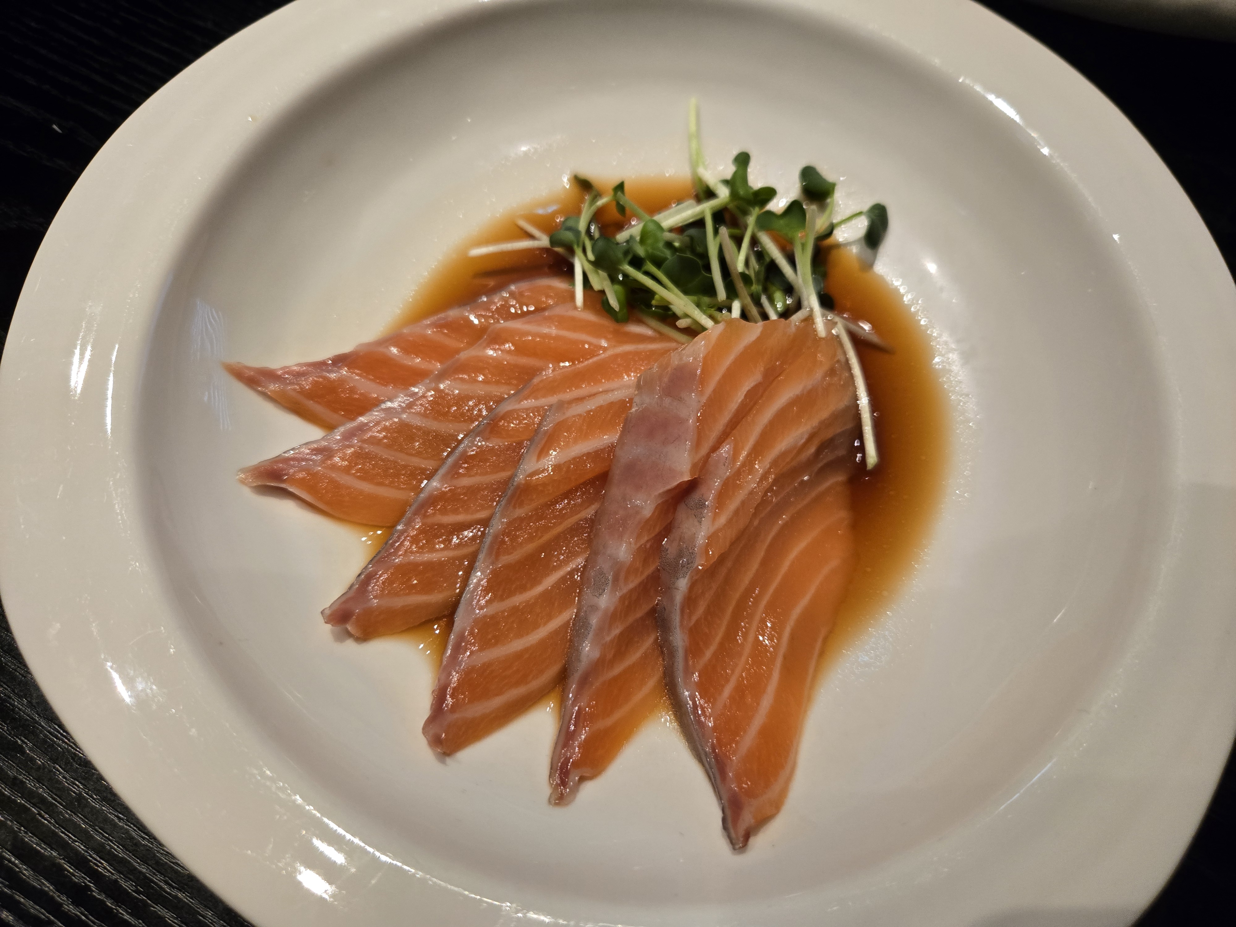 그리고 다음으로는 폰즈소스를 뿌린 연어가 나옵니다.