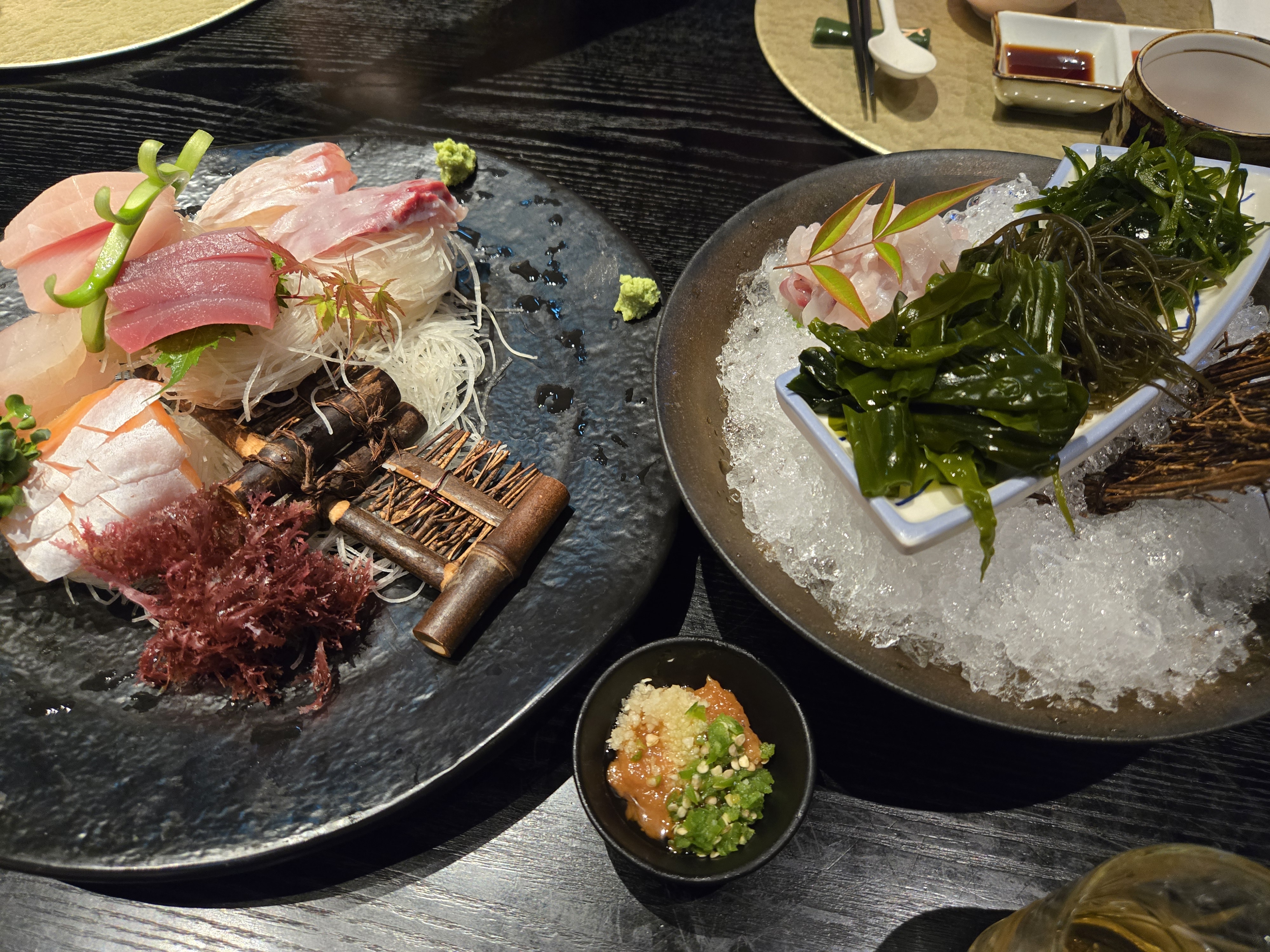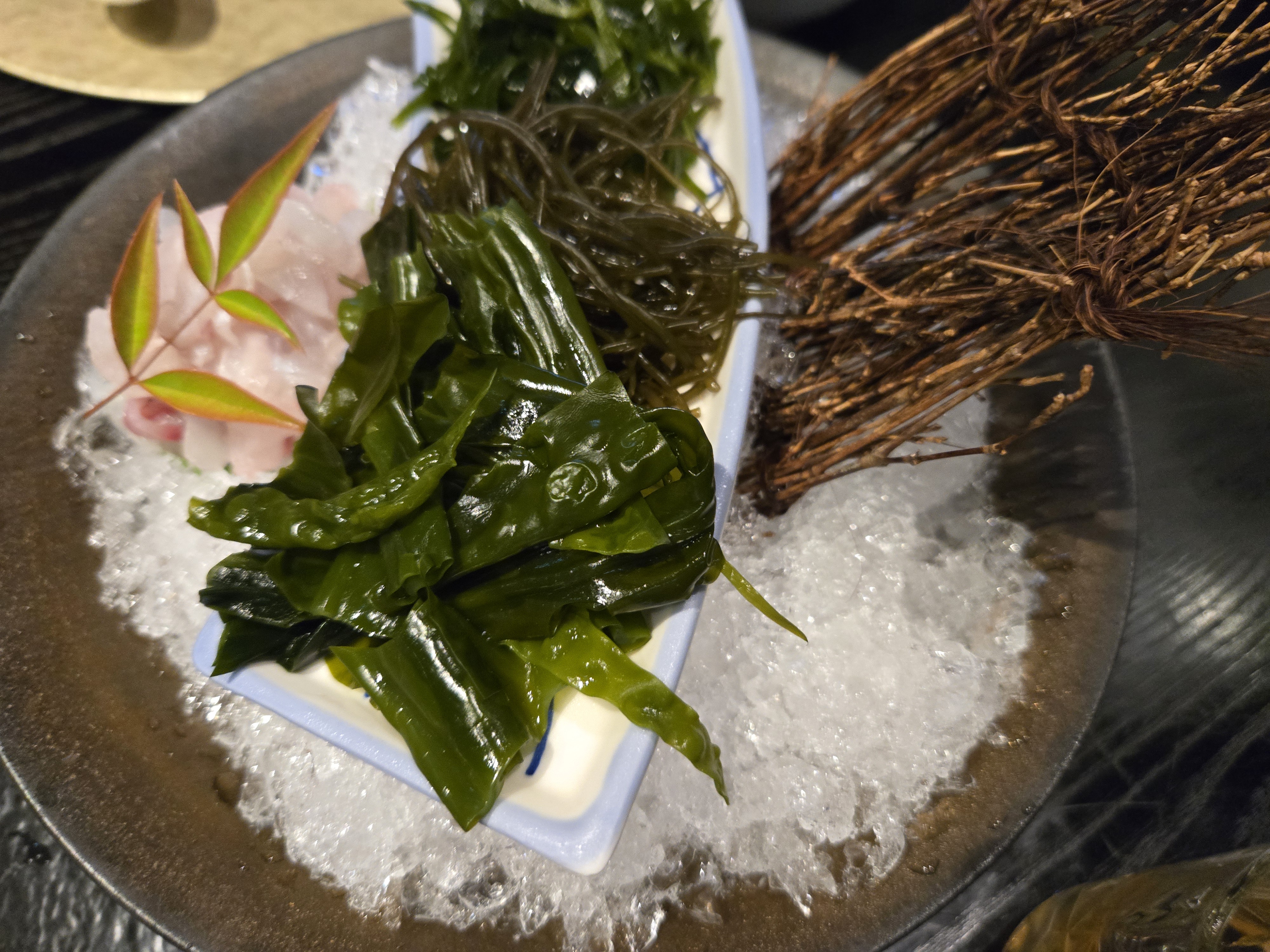 사시미와 함께 해초류, 묵은지 락교 초생강도 나옵니다.