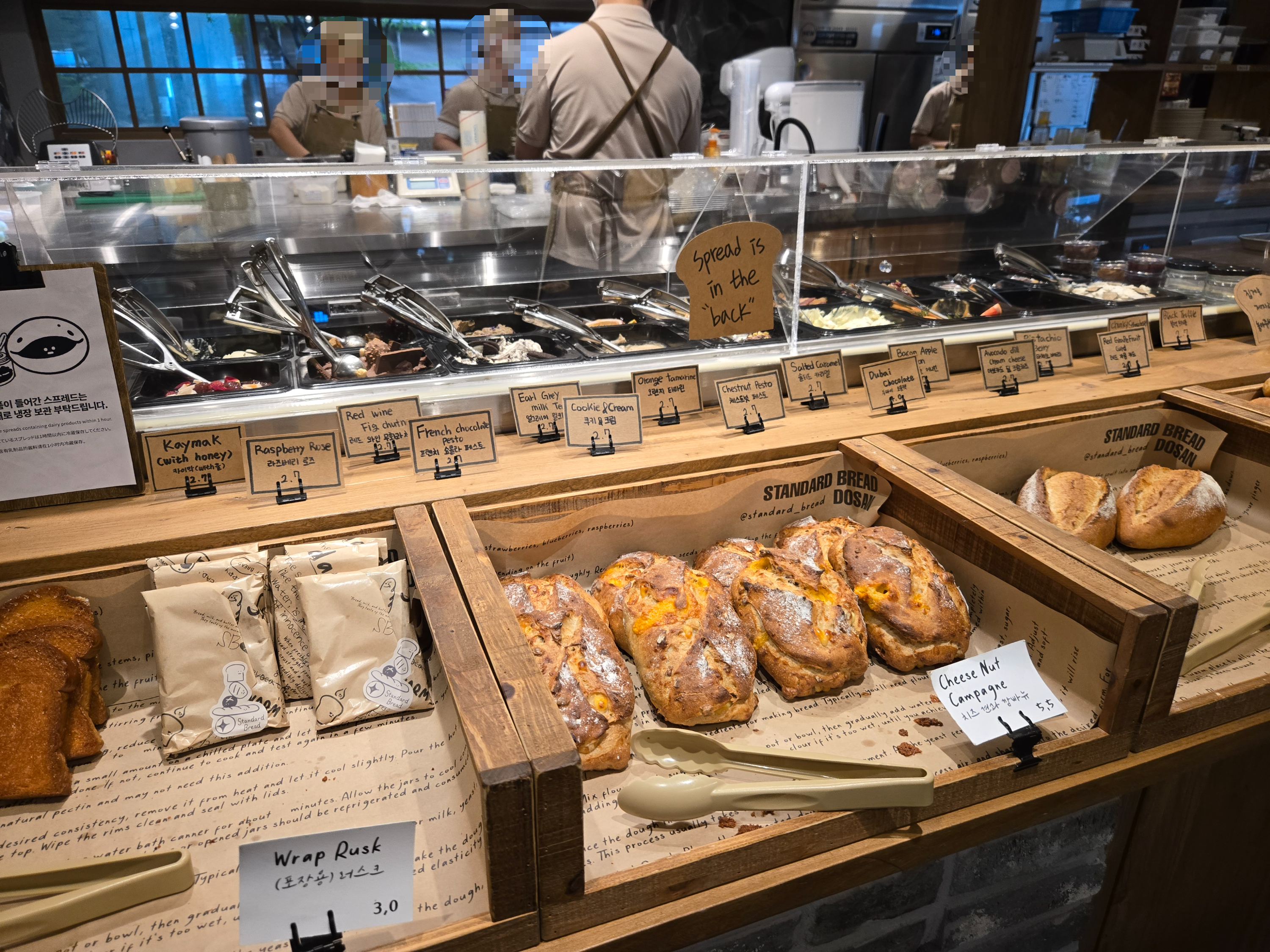 식빵 맛집인 스탠다드브레드에는 갓 구운 빵들이 많이 나와있었습니다.