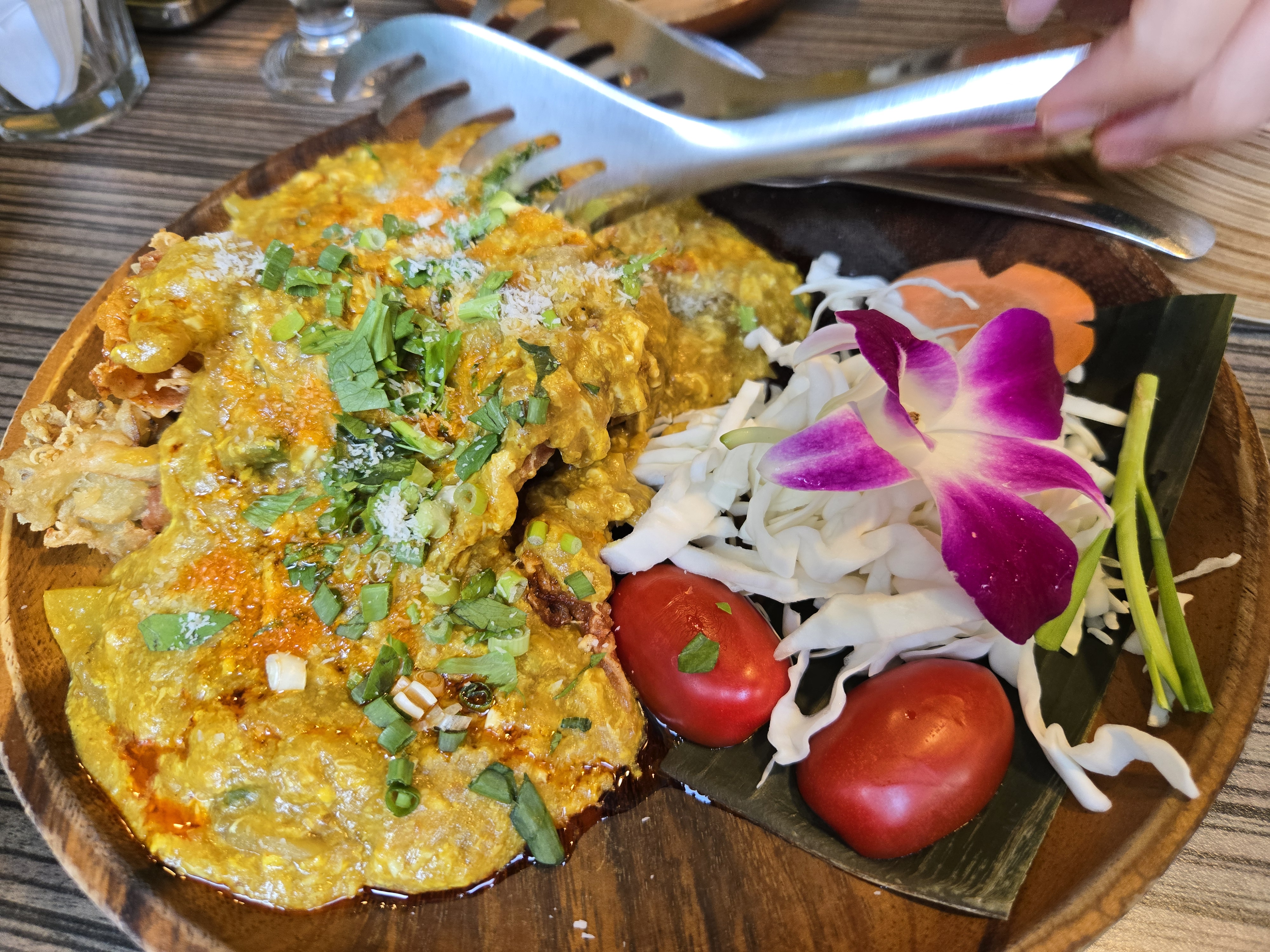 튀긴 게에 코코넛 밀크와 계란이 들어간 부드러운 커리가 잘 어우러진 뿌팟퐁커리였습니다.