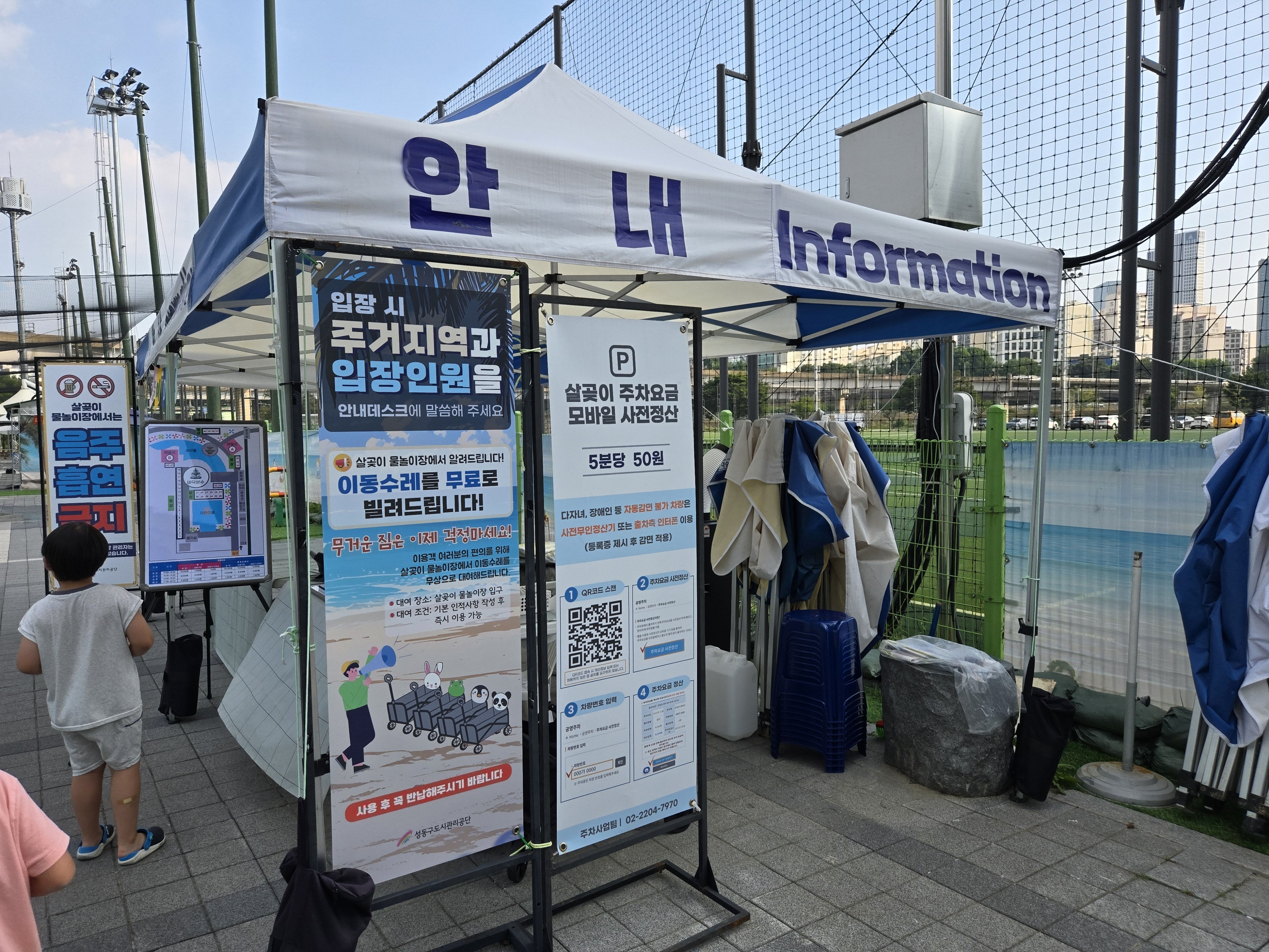 저희가 방문했을때는 주중 야간이라 그런지 살곶이 물놀이장 매점이 운영하지는 않았습니다.
