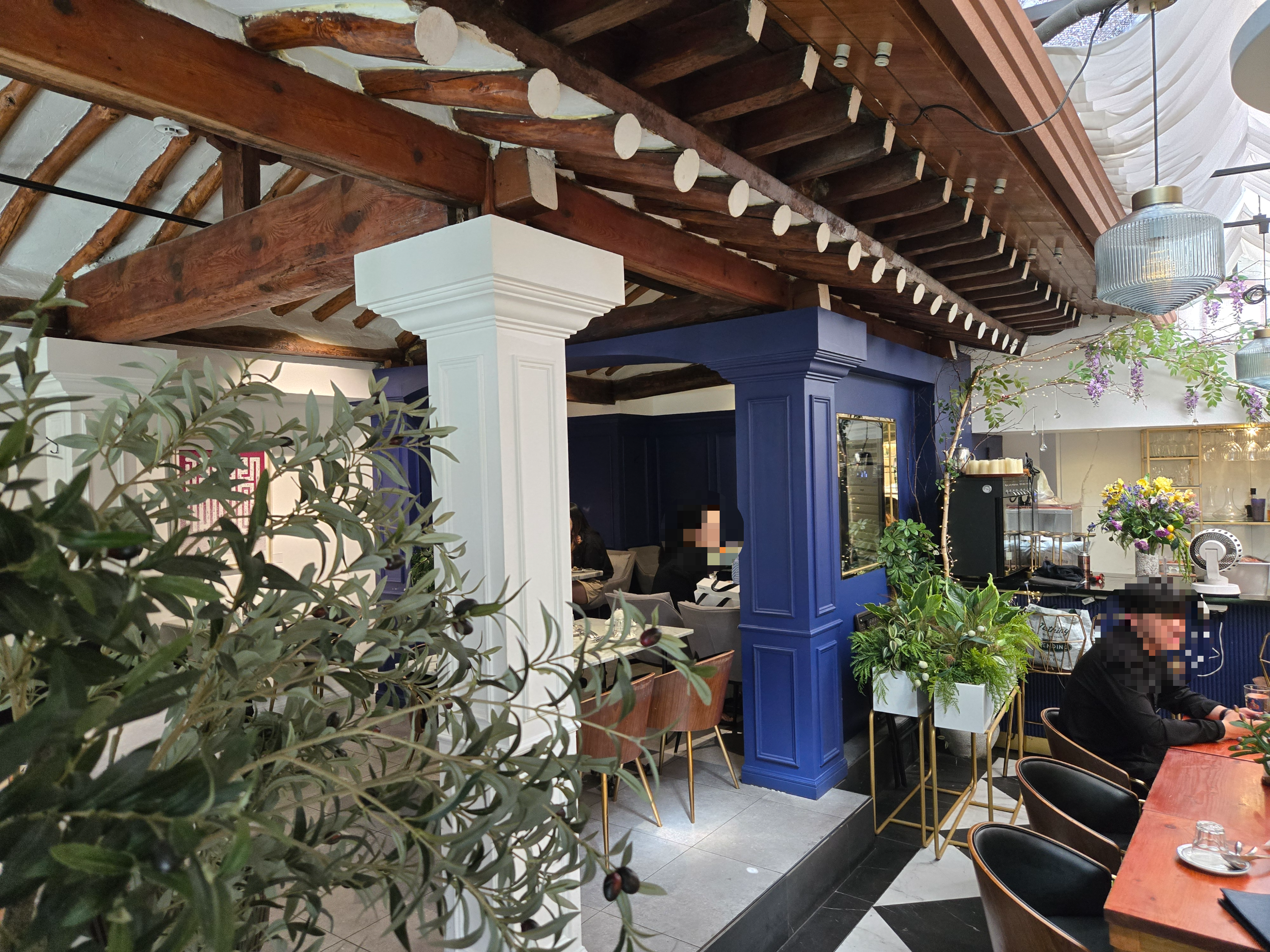 한옥의 구조를 살리면서도 유럽 느낌의 기둥과 아치형 통로 그리고 각종 식물과 조명들이 잘 어우러진 인테리어 였습니다.